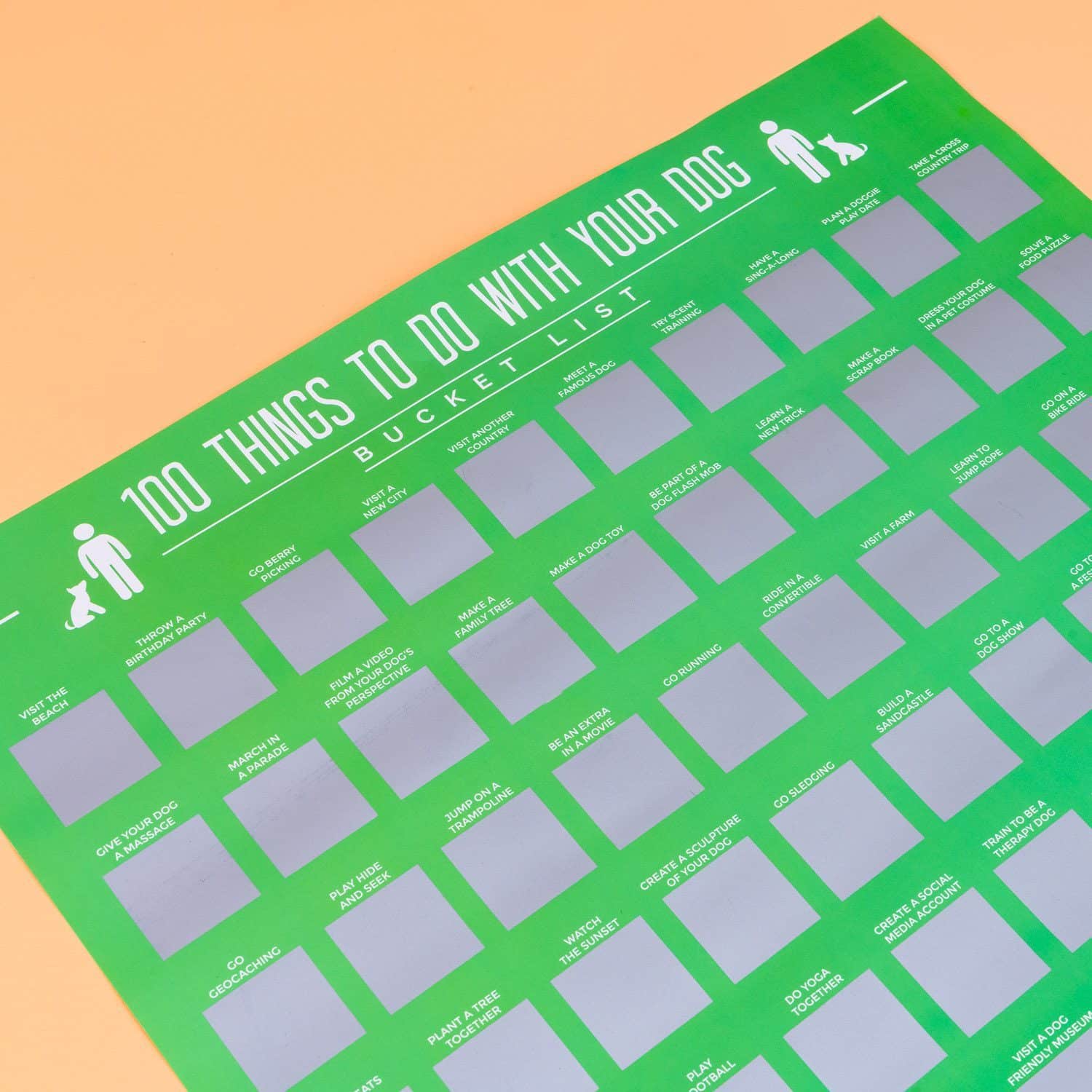 - Rubbelposter mit Bucketlist-Punkten, die du mit deinem Hund machen kannst
