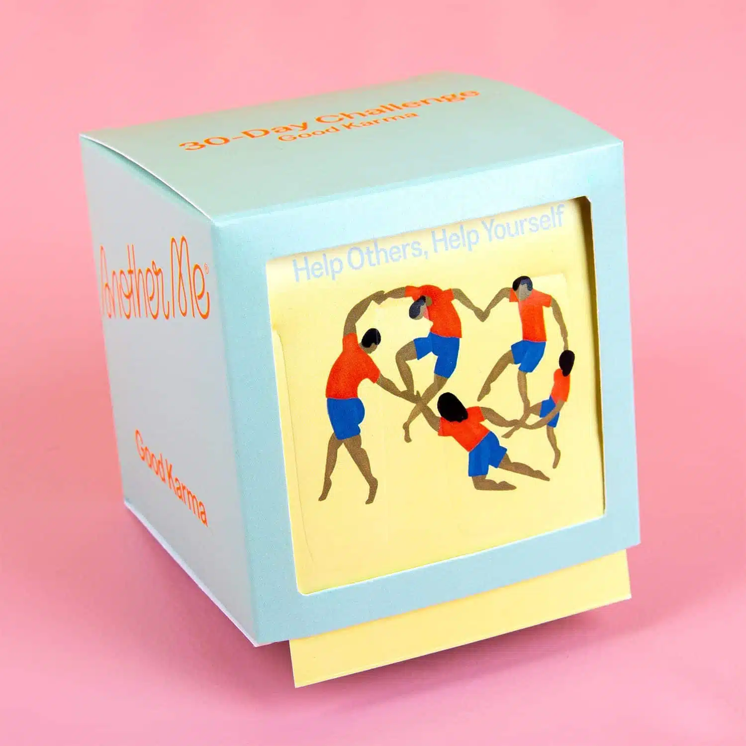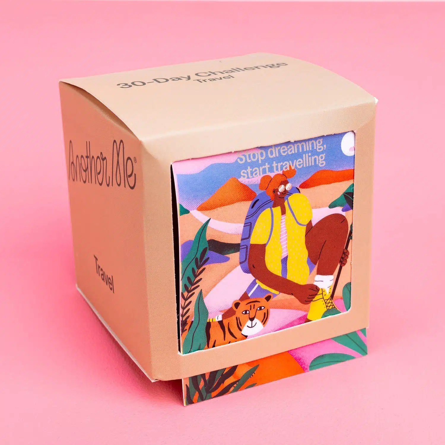 Stehst du gerne vor Herausforderungen? Dann ist die 30 Day Challenge von Another Me genau das Richtige fรผr dich. Dieser Wรผrfel ist gefรผllt mit 30 รผberraschenden Herausforderungen. Du hast die Wahl zwischen verschiedenen Boxen, die alle darauf ausgerichtet sind, dass du achtsamer lebst und glรผcklicher im Leben stehst. Es gibt zum Beispiel 30 Day Challenges, die dir helfen, dankbar zu sein, gesรผnder zu leben, einen digitalen Detox zu machen, Dinge zu akzeptieren, grรผner zu leben, zu entspannen, auf alles zu pfeifen und mehr. Hast du nach einem Monat alle Herausforderungen gemeistert, wirst du sehen, dass sich dein Lebensstil ein wenig (oder vielleicht sogar radikal) verรคndert hat.