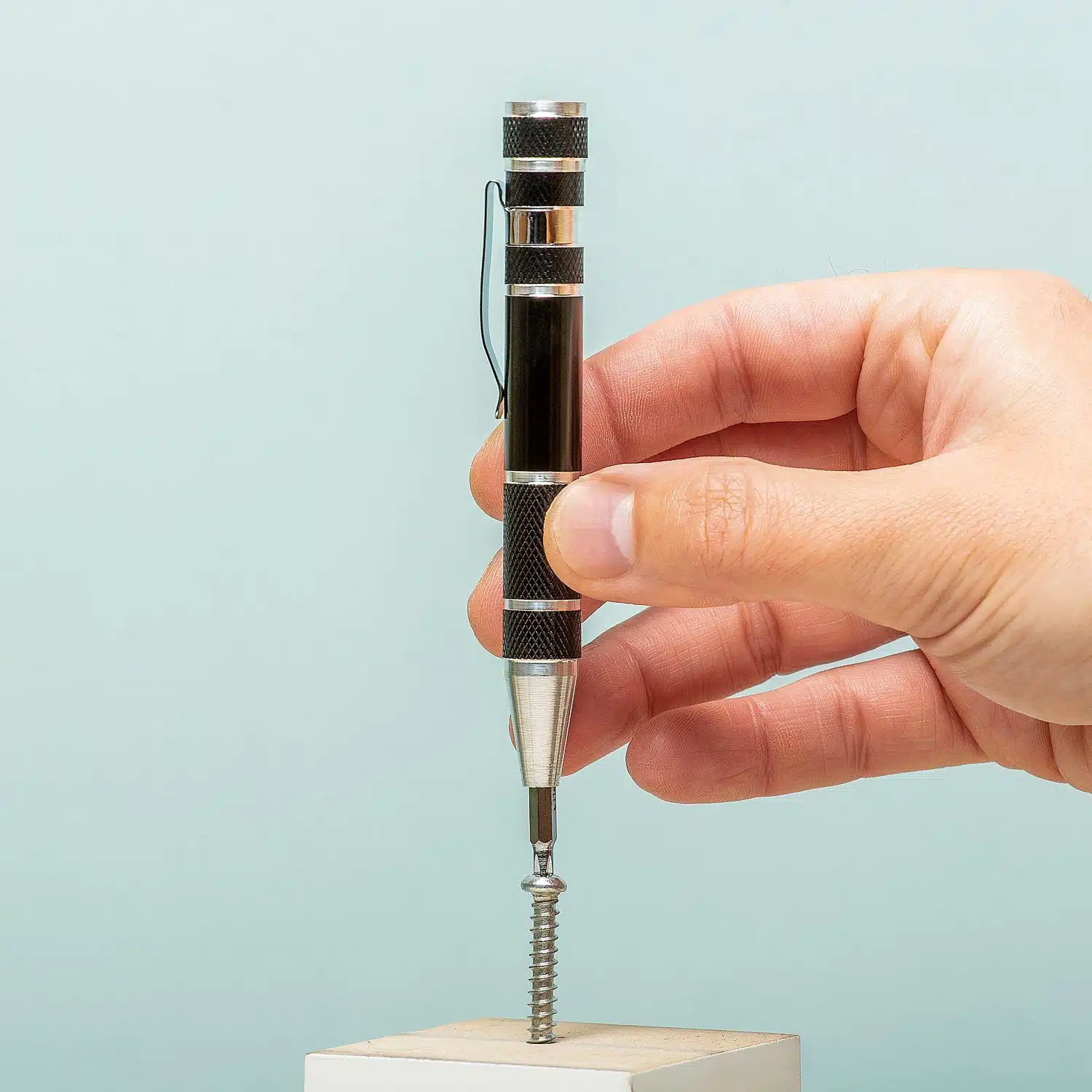 Alle Bits sind magnetisch und rasten leicht in die Halterung ein. Das Set ist praktisch von der Größe her und leicht vom Gewicht. Daher ist es schön, den 8-in-1 Präzisions-Schraubendreher immer dabei zu haben. Aufgrund seiner kleinen Größe können Sie den Schraubendreher problemlos im Auto verstauen oder in die Handtasche stecken. Man weiß nie, was unterwegs passiert, zum Beispiel beim Batteriewechsel. Der Schraubendreher hat auch einen strong>Clip, sodass Sie dieses Werkzeug sogar an Ihrer Hemdtasche aufhängen können. Ideal, wenn Sie während Ihrer Arbeit oft einen kleinen Schraubendreher benötigen. Sie kaufen dieses Produkt online bei Vripper.