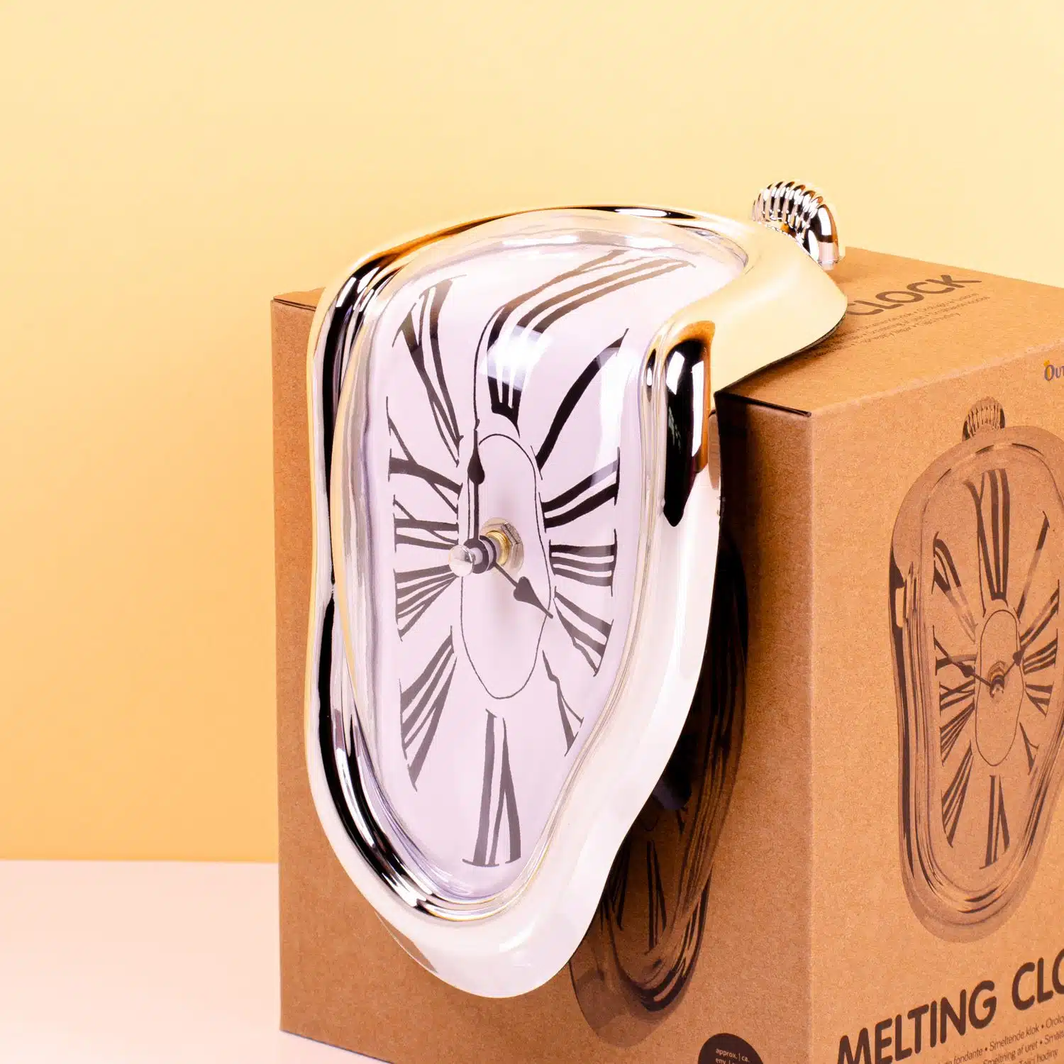 Het is een kunstwerk voor in huis: de smeltende klok. Natuurlijk herkent zelfs de grootste kunstkenner hem: deze smeltende klok is geรฏnspireerd op het werk van Salvador Dalรญ. Het is een originele klok met een twist: zet hem dus op een kast of plank. Het is het perfecte cadeau om je liefde voor kunst in huis te tonen.