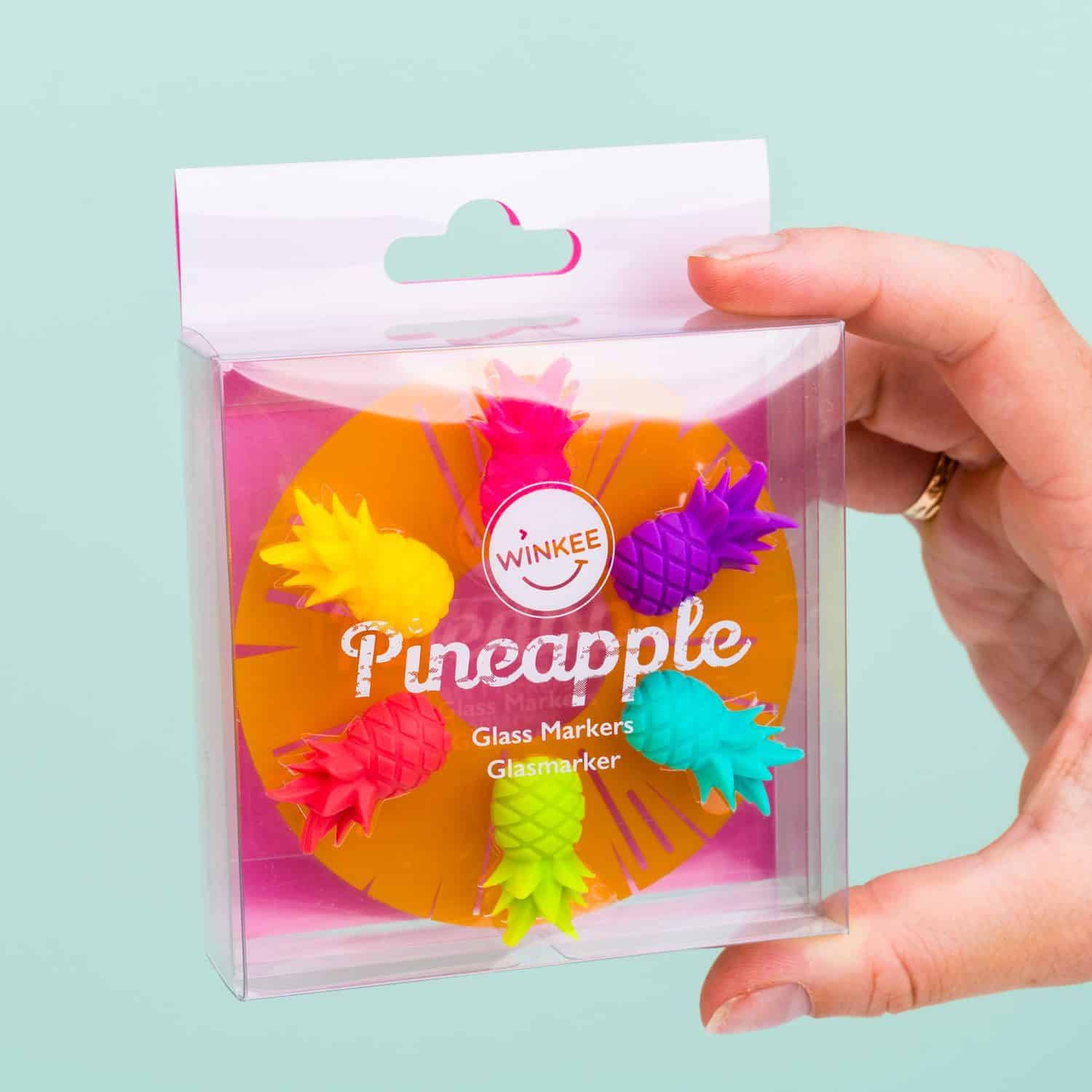 Gläser? Überprüfen! Trinken? Überprüfen! Ananas? Überprüfen! Sie sind vollständig bereit für Ihre tropische Party. Alles, was Sie brauchen, sind die Pineapple-Glasmarker (6er-Set) von Winkee. Mit diesen fröhlichen Ananas wissen Sie genau, welches Glas Ihnen gehört und können sicher sein, dass niemand Ihre Pina Colada schlürfen wird. Diese Glasmarker sind auf jeder Party unverzichtbar!