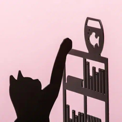 Hast du ein Bücherregal mit deinen Lieblingsbüchern oder einen schönen Schrank, in dem alles ordentlich platziert ist? Mit der Angelnder Katzen Buchstütze von Balvi sieht das Ganze noch etwas netter aus. Diese Buchstütze hält nicht nur deine Bücher ordentlich aufrecht, sondern ist auch nett anzusehen. Sie stellt eine Katze dar, die nach einem Goldfischglas auf einem Schränkchen greift.