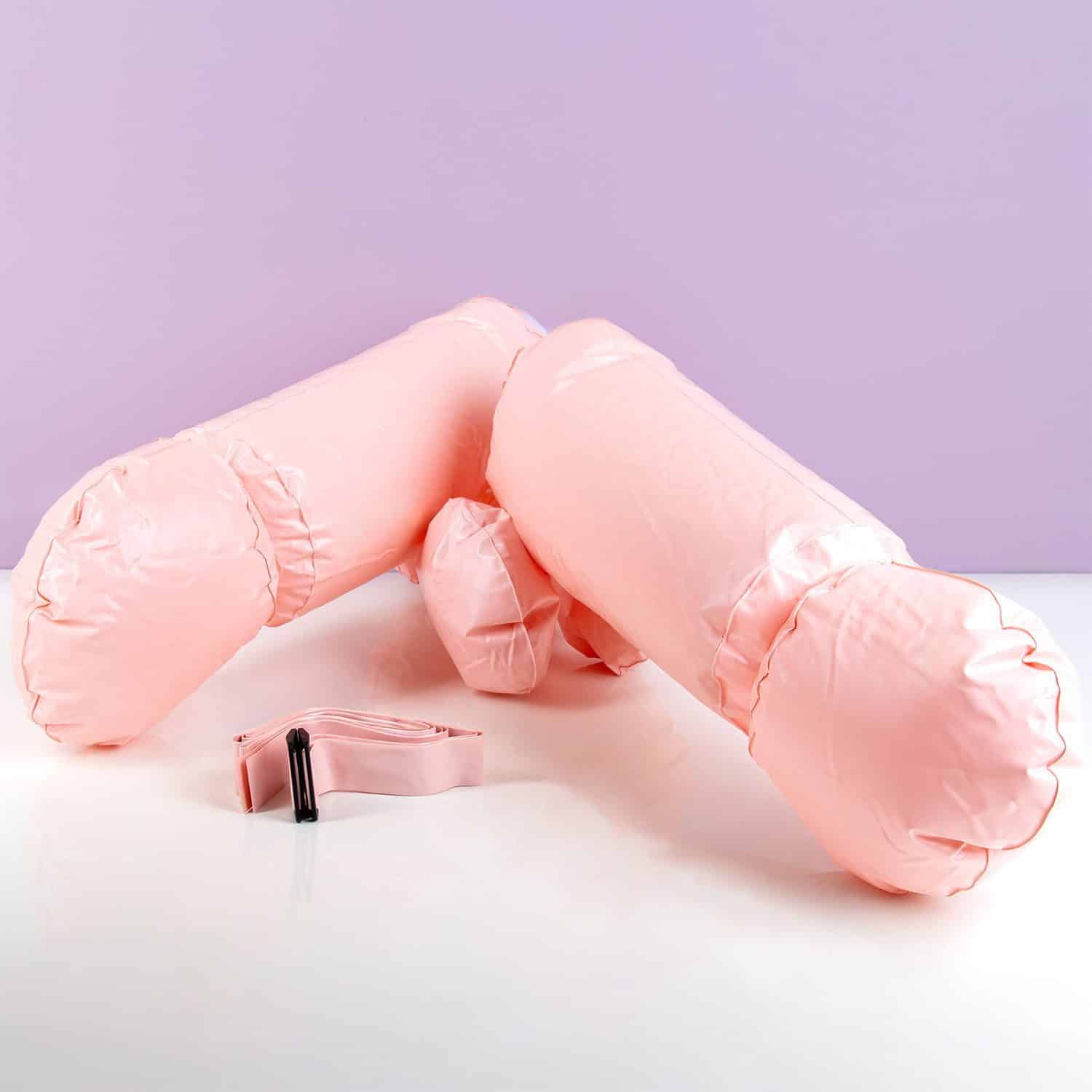 - Mit zwei verstellbaren Gurten und zwei aufblasbaren Penissen