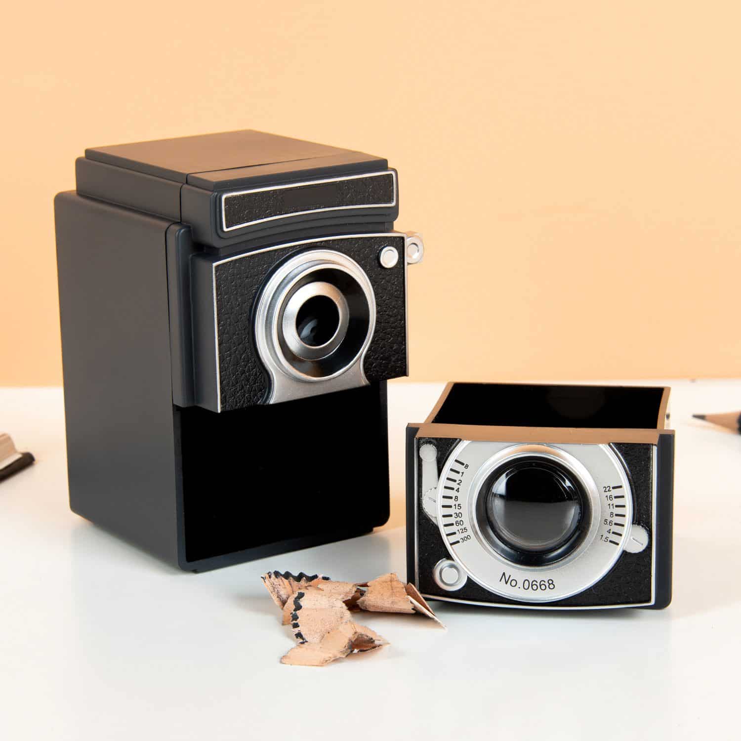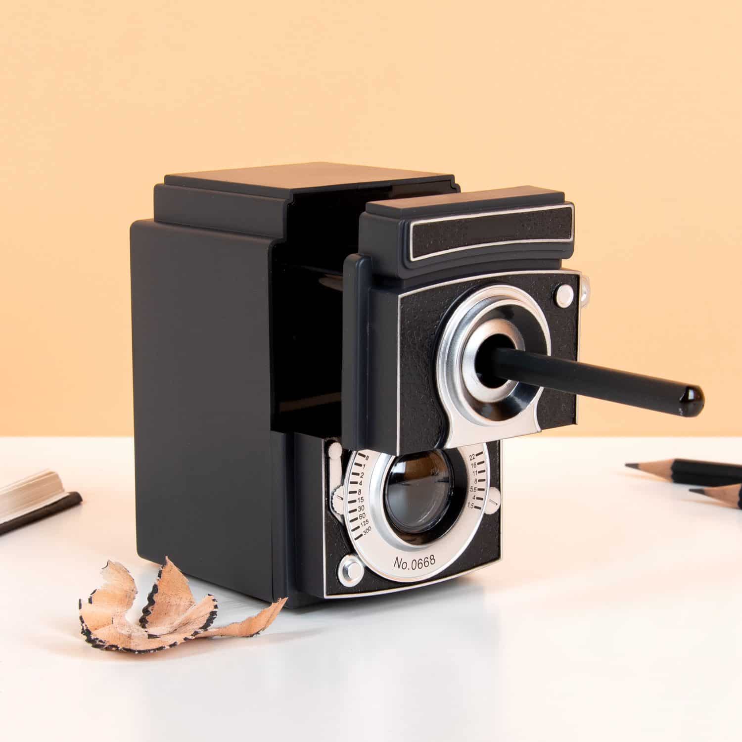 Automatischer Anspitzer in Form einer Kamera von Kikkerland