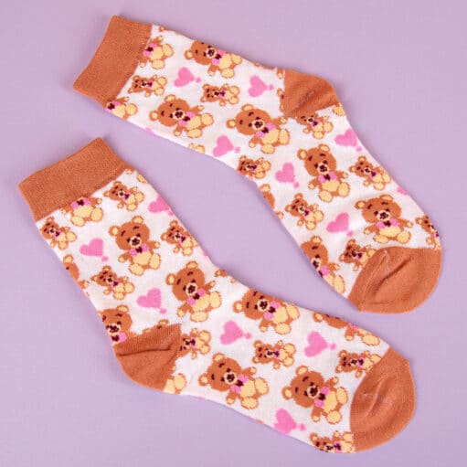 - Socken mit niedlichen Teddybären und rosa Herzchen