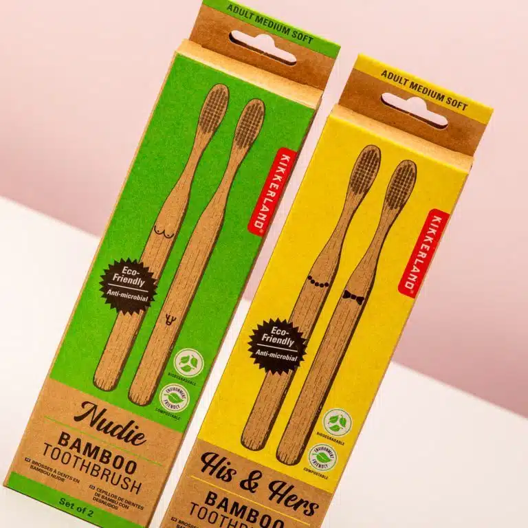 Wenn du umweltbewusst lebst, bist du sicherlich mit dem Konzept von Bambuszahnbürsten vertraut. Die Bambuszahnbürsten von Kikkerland sind speziell für Paare gemacht. Die zwei Zahnbürsten bestehen aus umweltfreundlichem, nachhaltigem Bambus. Dieses Material ist von Natur aus antibakteriell und biologisch abbaubar. Die Borsten sind aus weichem Nylon gefertigt. Es gibt zwei verschiedene Sets: His & Hers, mit einem Aufdruck von einer Fliege und einer Perlenkette. Oder wähle die lustigen Nudies, mit einem Penis und Brüsten.