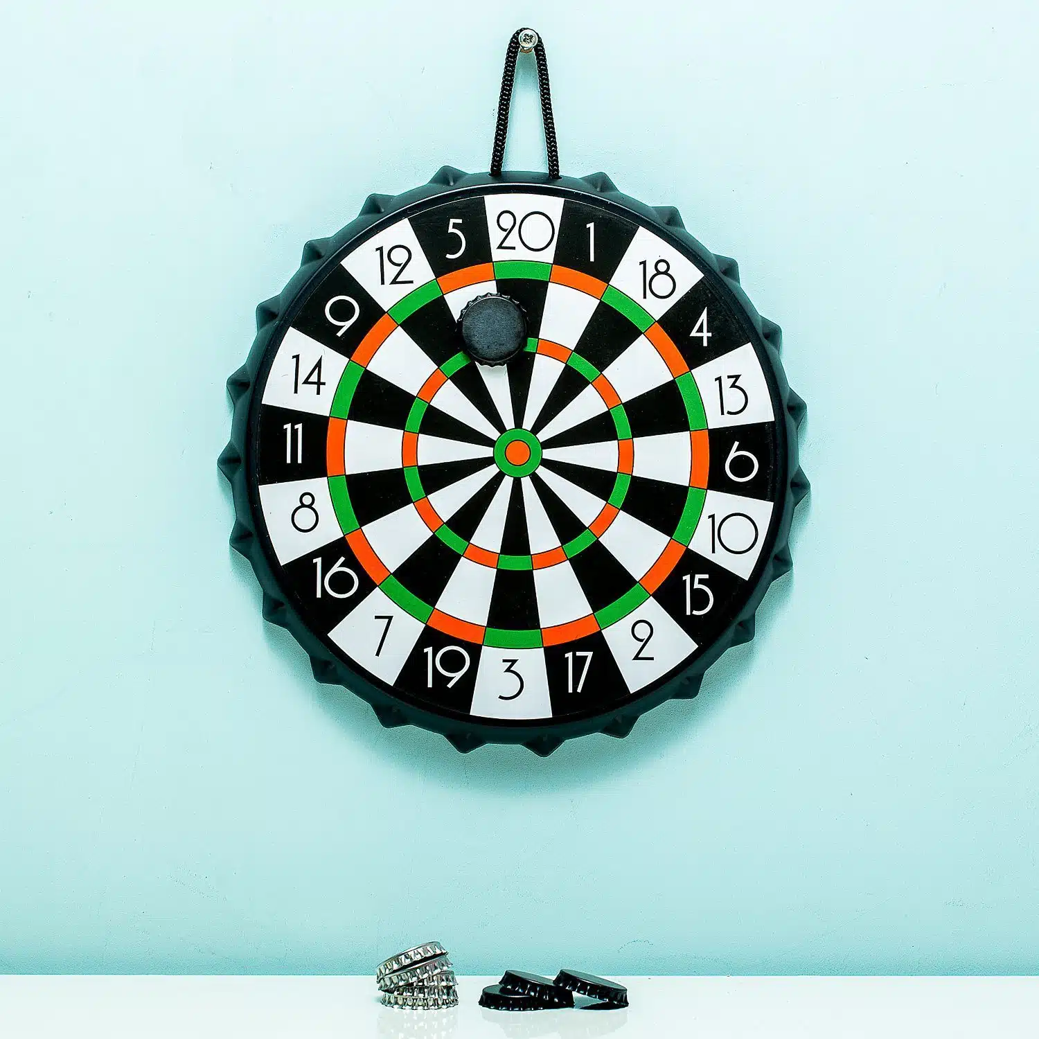 Lust auf eine Runde Darts, aber ohne Lรถcher in die Wand zu machen? Das Bierdeckel-Dartspiel ist hierfรผr perfekt! Dieses Dartboard ist ein Muss fรผr Studenten und Mรคnner, die eine echte Mรคnnerecke zu Hause haben. Du wirfst mit den mitgelieferten Bierdeckeln auf die Scheibe und versuchst so, mรถglichst viele Punkte zu erzielen. Das Dartboard kann aufgestellt oder aufgehรคngt werden.