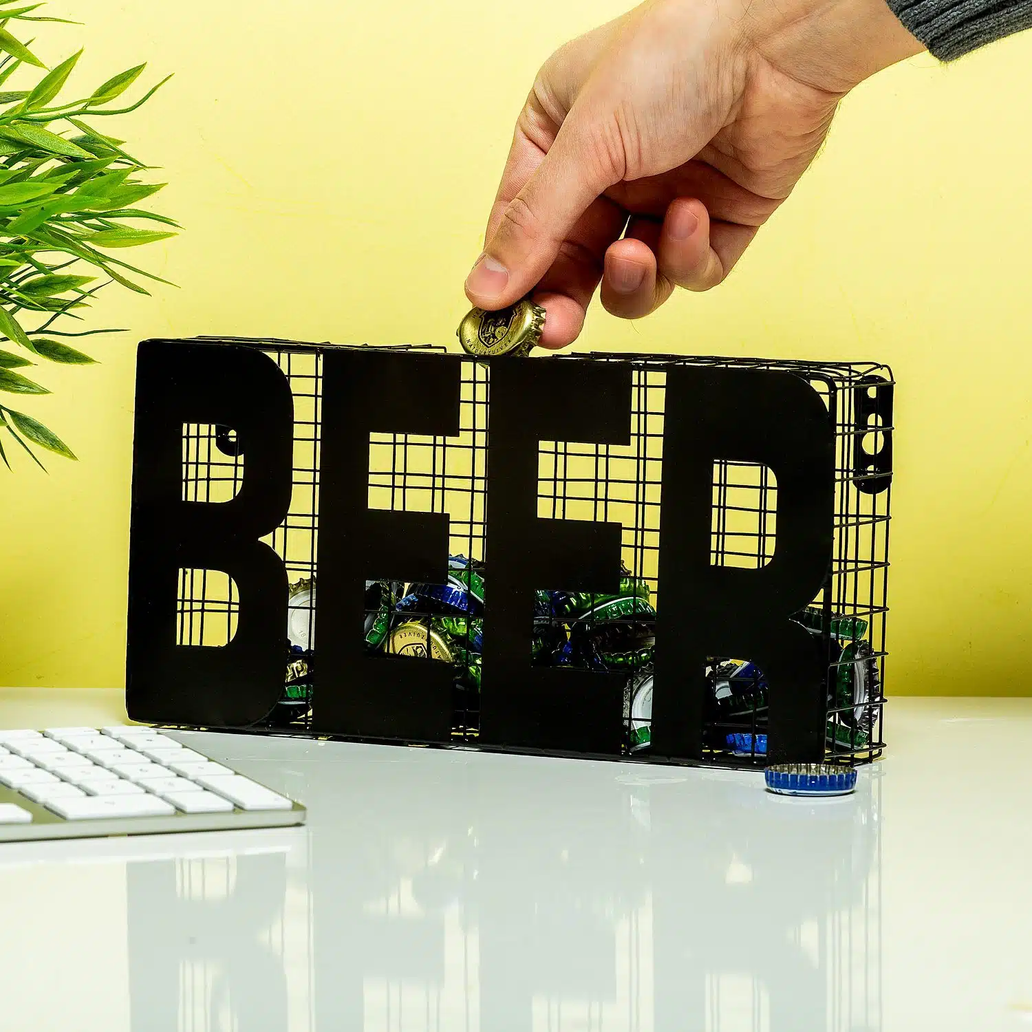 Dem leidenschaftlichen Bierliebhaber kann man vieles schenken. Einen neuen Flaschenรถffner oder ein Paket Spezialbiere zum Beispiel. Aber der Bierdeckel-Sammler ist auch eine tolle Option! Dieses Gestell wird verwendet, um Bierdeckel zu sammeln. Hรคng es an die Wand und wirf die Bierdeckel direkt hinein, wenn du mit dem รffnen einer Flasche fertig bist.