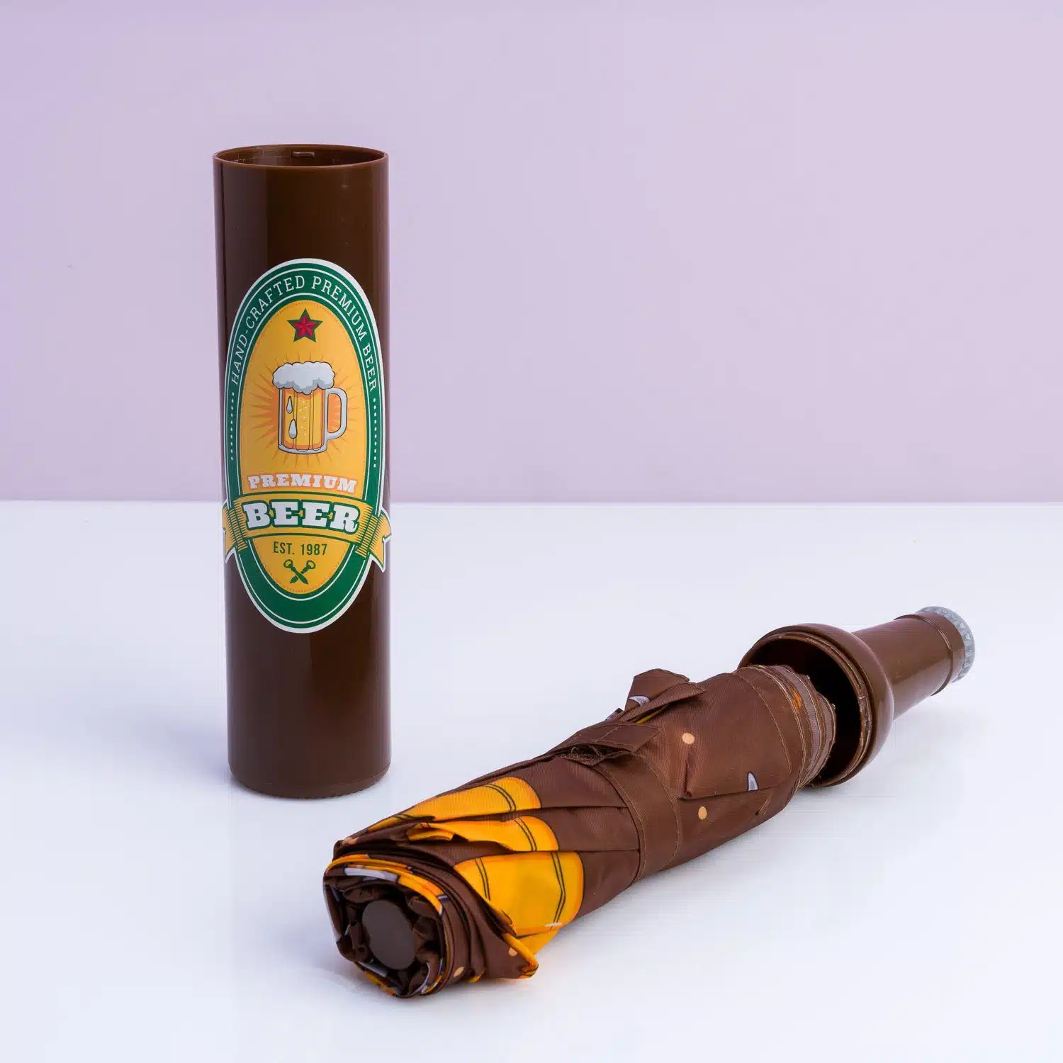 Regenschirm, der einer Bierflasche von Out of the Blue ähnelt
