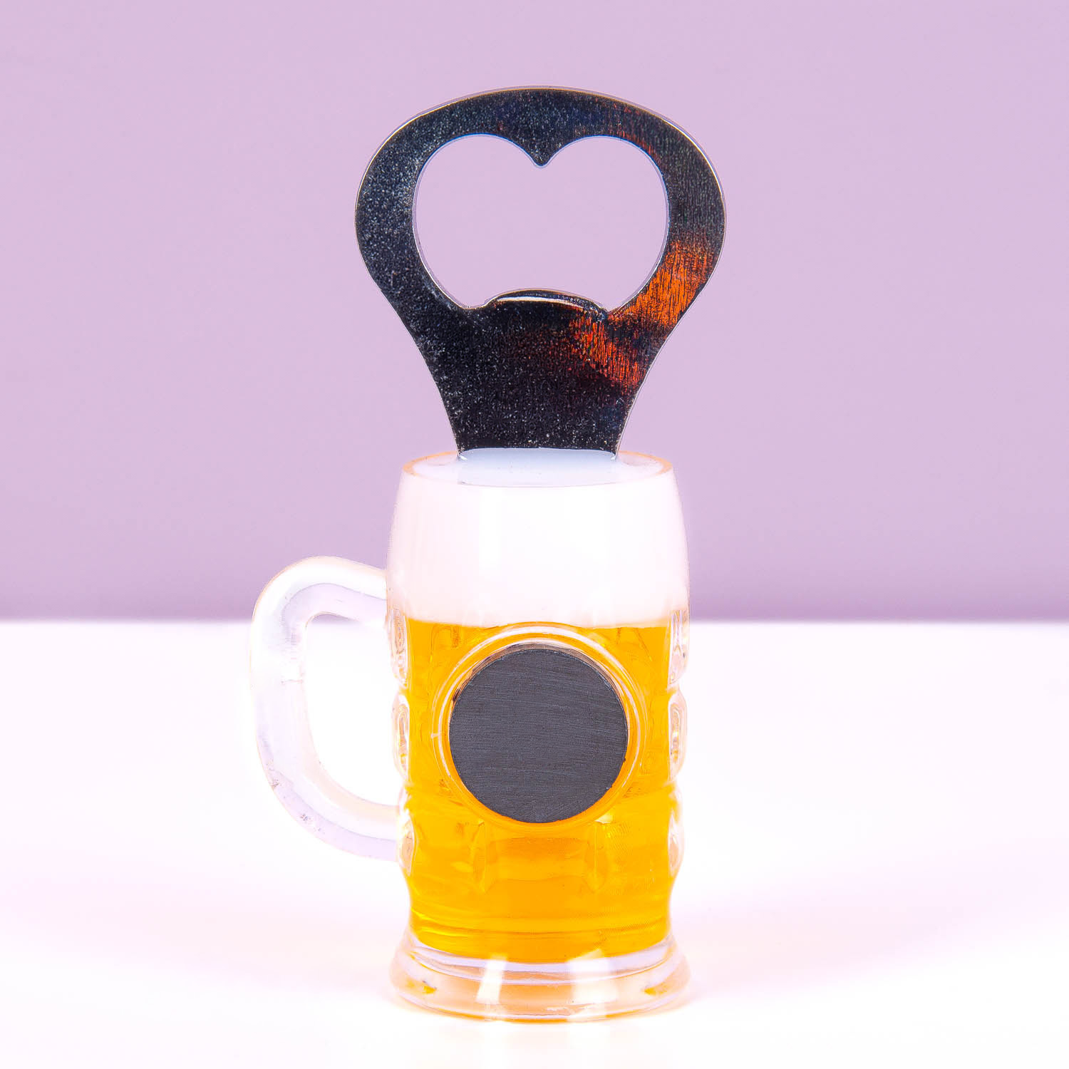 Ein Flaschenöffner in Form eines vollen Bierglases mit Schaumkrone: Der Bierglas-Flaschenöffner mit Magnet ist das praktischste Accessoire für Bierliebhaber. Häng ihn mit dem Magneten an den Kühlschrank, damit er immer griffbereit ist, wenn du eine Flasche öffnen willst.