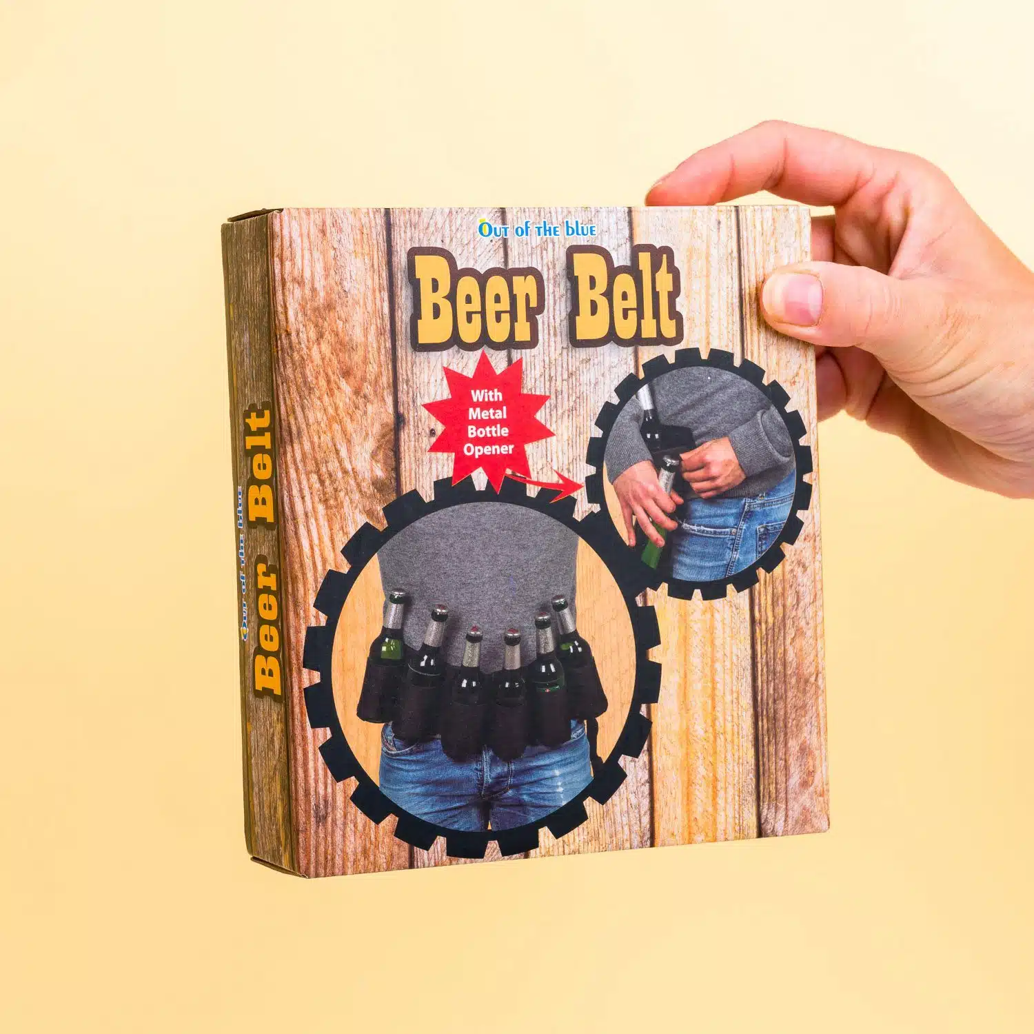 Das Bier freihändig trinken: Es ist einfacher als Sie denken. Klicken Sie auf den Biergürtel von Out of the Blue und Sie haben plötzlich Platz für sechs Flaschen Bier. Der Biergürtel ist ideal für Festivals, Grillabende und andere Partys. Es ist das ultimative Geschenk für Bierliebhaber, die nicht jedes Mal Zeit haben, zur Bar zu laufen.