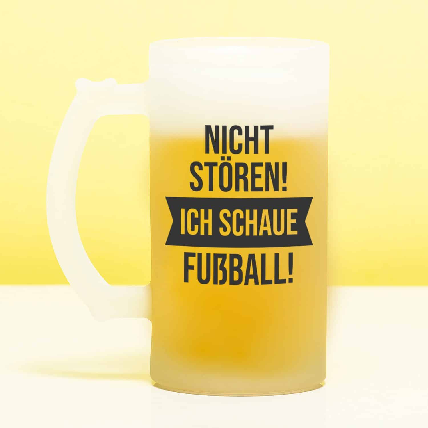 Während der EM oder anderen Fußballspielen weißt du es schon: Papa, Freundin oder Bruder sind wieder unerreichbar. Dieser Bierkrug Nicht stören! Ich schaue Fußball! nimmt das auf die leichte Schulter. Auf diesem großen Bierglas steht der Text: Nicht stören! Ich schaue Fußball! Es ist das perfekte Geschenk für jeden, der gerne Fußball schaut, ohne dabei von Kindern, Partnern und anderen lästigen Ablenkungen gestört zu werden.