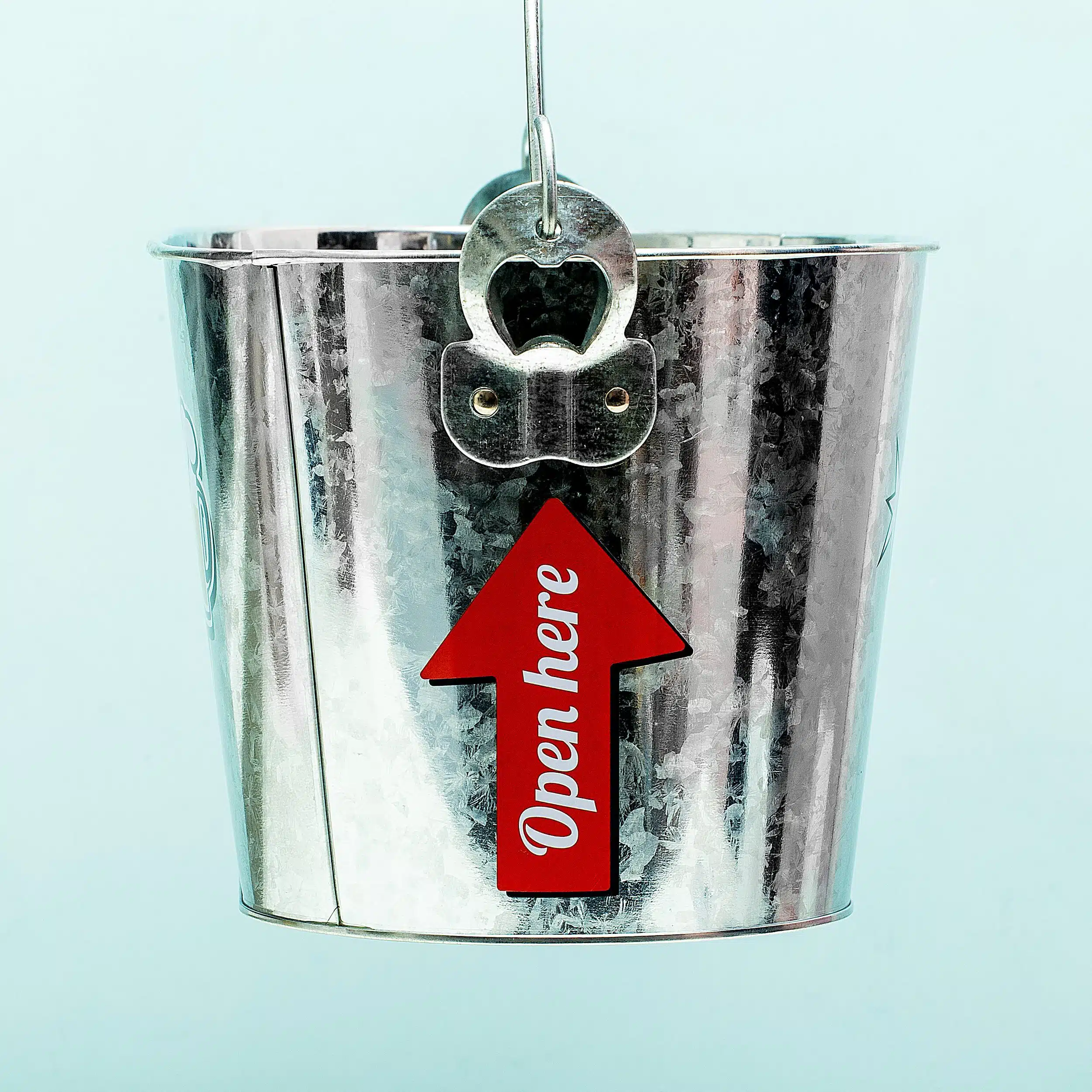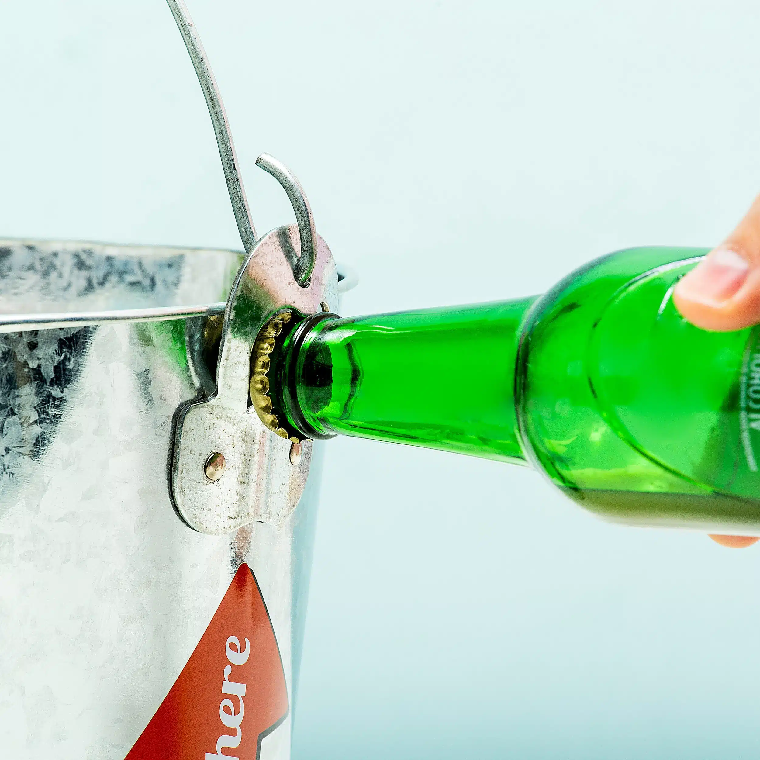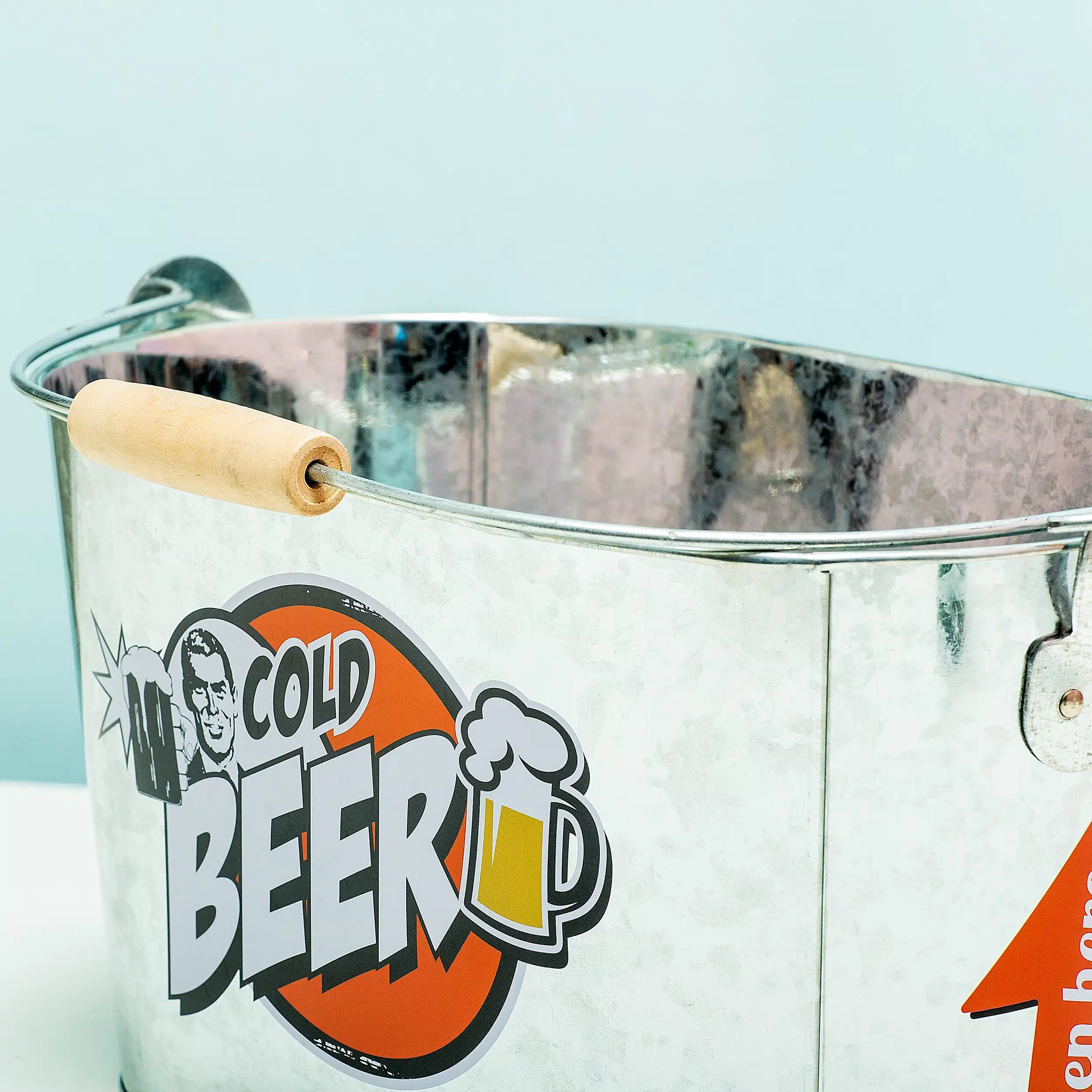 Wo ist diese Party? Na hier, natürlich mit dem kalten Bier. Mit dem Beer Cooling Bucket Cold Beer von Out of the Blue haben Sie nie wieder Probleme mit lauwarmem Bier. Sie füllen den Bierkübel mit Eis und stellen die Bierflaschen oder andere Getränkeflaschen hinein. So bleibt das Bier schön kühl,während Sie Ihren Kühlschrank nicht ständig auffüllen müssen. Der coole Eimer hat auch zwei praktische Öffner an der Seite, die Sie nie verlieren werden. Sind plötzlich alle Flaschen aus dem Eimer verschwunden? Dann wird die nächste Ladung Bier gekühlt, sobald Sie die Flaschen ins Eis stellen. Der Cold Beer Kühleimer besteht aus Metall.Im Eimer ist genug Platz für jede Menge Eiswürfel und etwa fünf bis sieben Trinkflaschen. So können Sie und Ihre Freunde ein kühles Bier in der Sonne genießen.