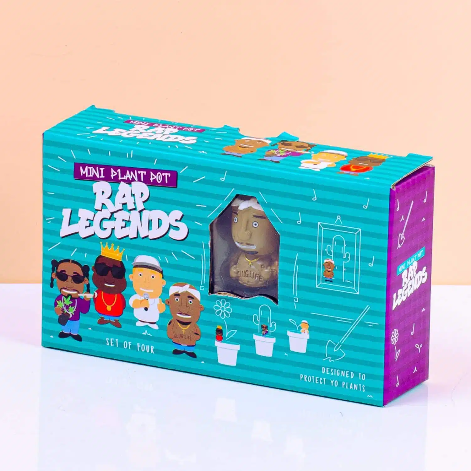 Wie schรผtzt du deine Pflanzen und verpasst ihnen gleichzeitig einen coolen Look? Mit dem Blumentopf-Rapper-Set (4 Stรผck) von Gift Republic natรผrlich! Ein urkomisches Set von vier legendรคren Rappern fรผr deinen Blumentopf. Die Rapper – Eminem, der Notorious B.I.G., Tupac und Snoop Dogg – tun alles, um deine Pflanzen zu schรผtzen. Und seien wir ehrlich: Dadurch werden deine Pflanzen auf einmal eine ganze Ecke cooler.