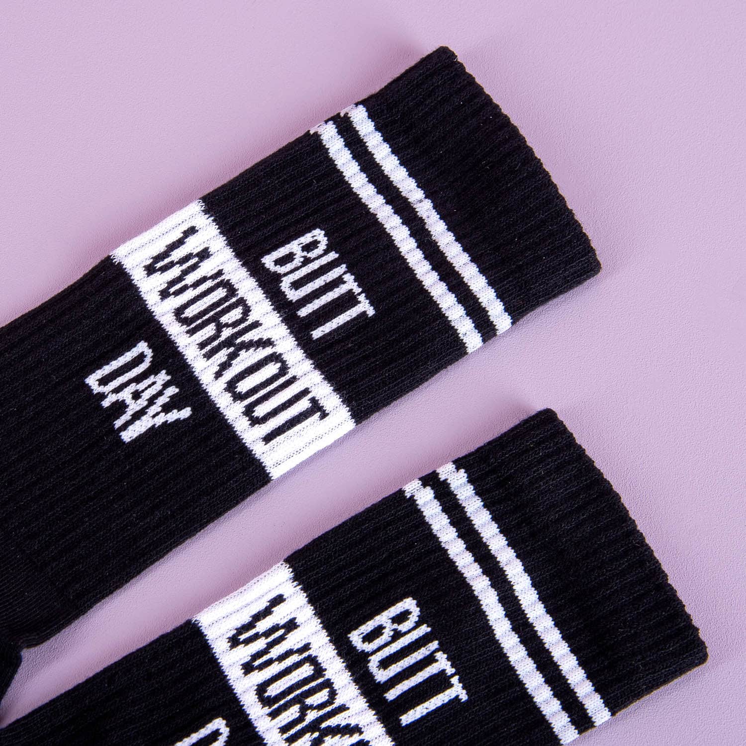 - Schwarze Socken mit dem Text: BUTT WORKOUT DAY