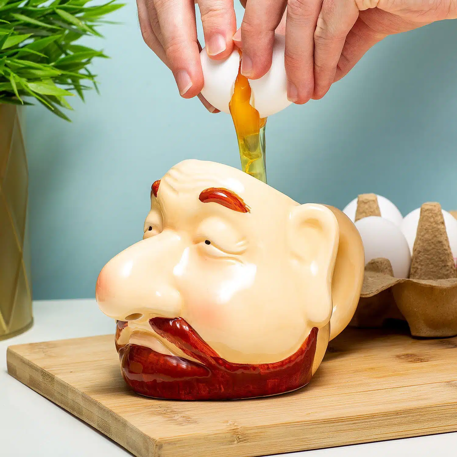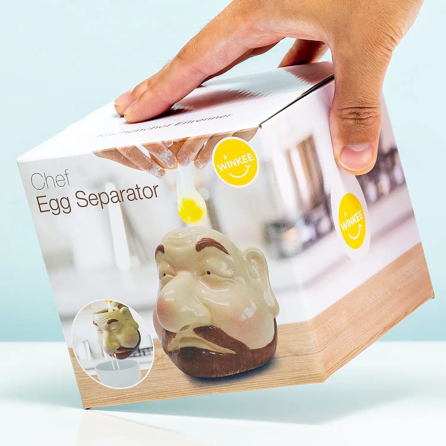 รberraschen Sie einen Freund (oder Feind) mit dem schmutzigsten Eierseparator, den Sie je gesehen haben. Winkee’s Chef Egg Separator mag hilfreich erscheinen, ist aber wirklich schlรผpfrig. Sie zerschlagen ein Ei an seinem Kopf (achten Sie dabei darauf, dass das Eigelb nicht kaputt geht) und kippen ihn dann รผber eine Schรผssel. Das Eiweiร flieรt durch seine Nasenlรถcher heraus. Guten Appetit!