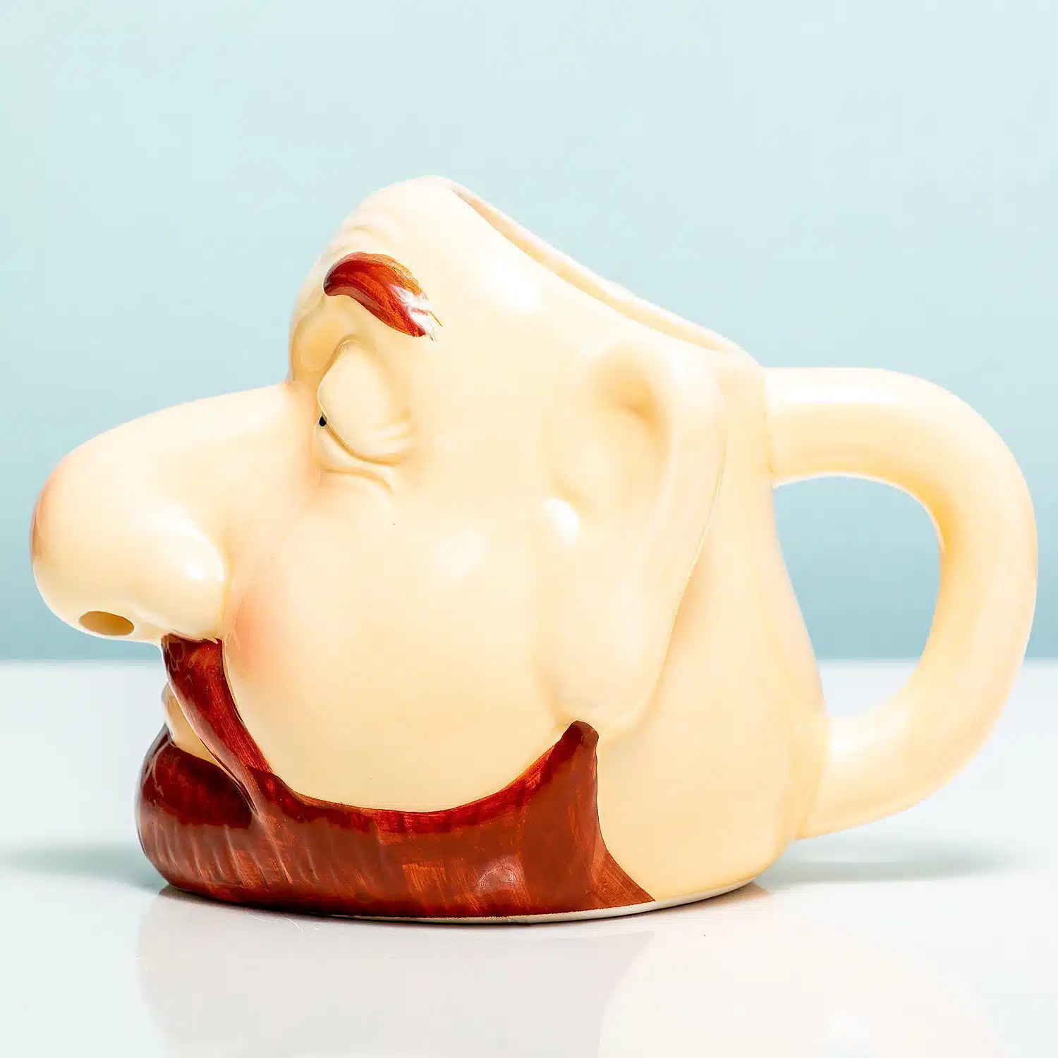- Eiertrenner mit aus der Nase herauslaufendem Eiweiร