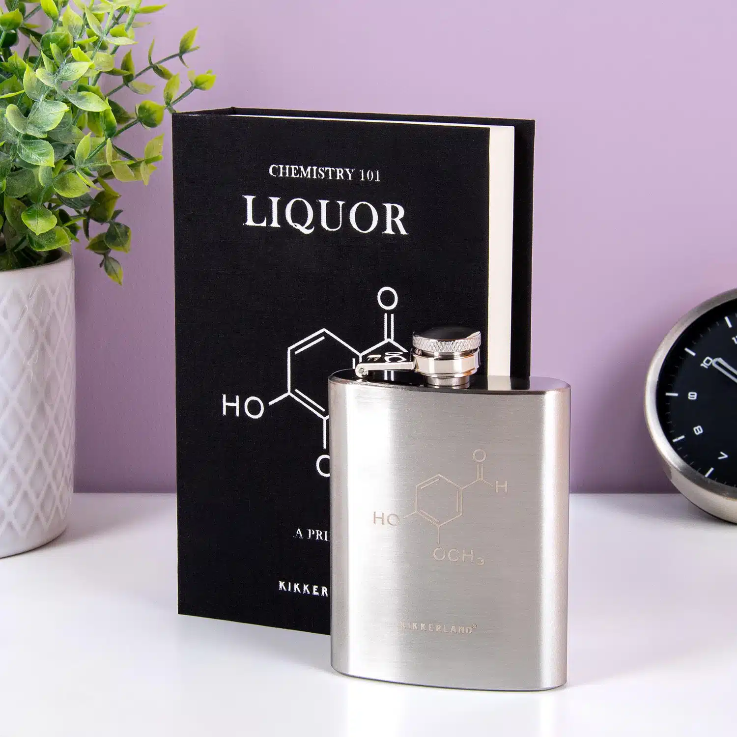 Mit dem Chemiebuch mit dem Flachmann von Kikkerland musst du dir keine Sorgen machen, dass jemand dein Getrรคnk stiehlt. Niemand wird vermuten, dass in diesem dicken Chemiebuch ein Flachmann mit deinem Lieblingsgetrรคnk versteckt ist. Wenn das Buch geschlossen ist, sieht es aus wie ein normales, schlichtes Chemiebuch. Aber wenn du es vorschlรคgst, findest du in der Mitte einen Edelstahl-Flachmann, der groร genug ist, um einen Schluck deines Lieblingsgetrรคnks zu genieรen.