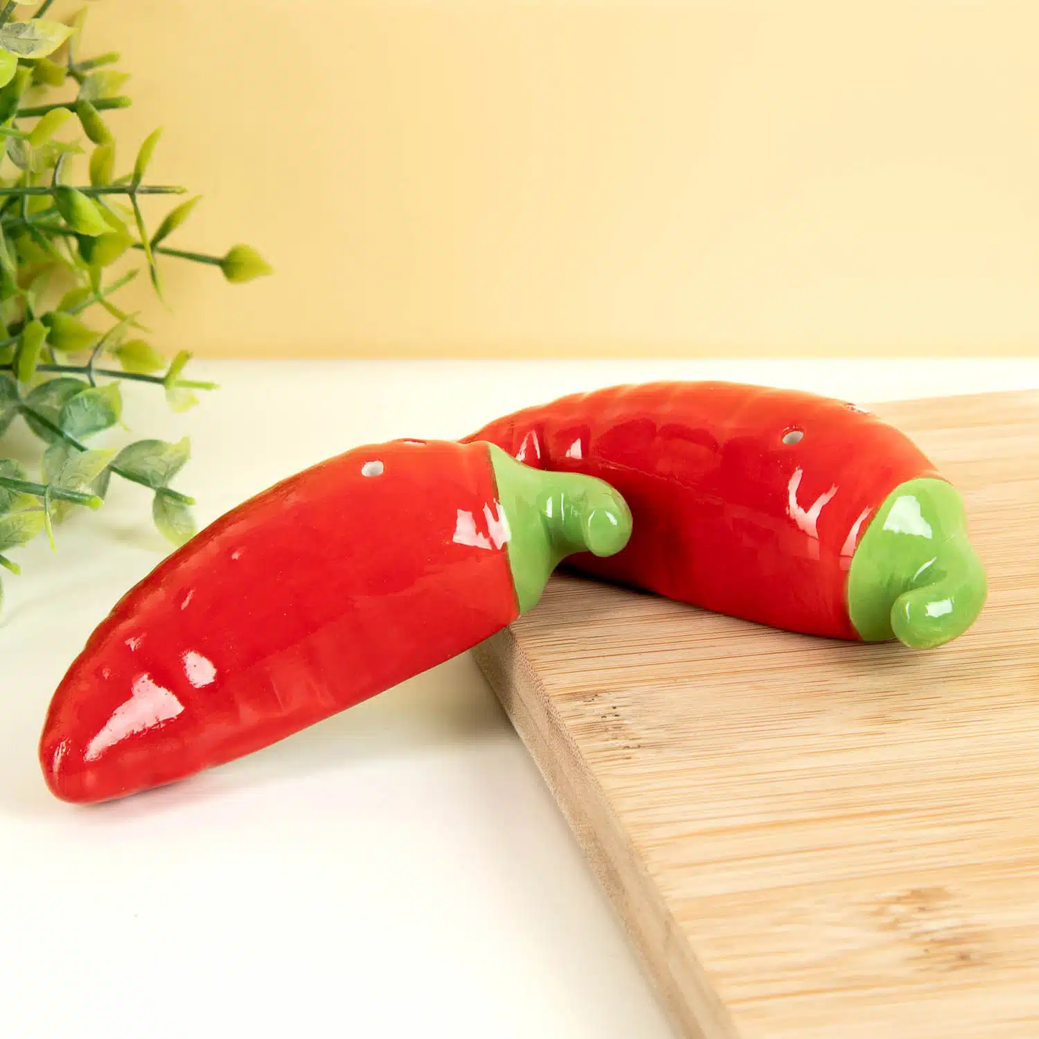 Bestellst du immer das schärfste Gericht auf der Speisekarte und kann dir kein Jalapeño scharf genug sein? Dann darf das Chili Salz- und Pfefferstreuer-Set von Fisura in deiner Küche nicht fehlen! Diese witzigen Streuer sehen aus wie zwei Chilischoten und bringen ordentlich Würze auf deinen Tisch. Auch ein originelles Geschenk für ein Brautpaar – früher war so ein Set sogar ein traditionelles Hochzeitsgeschenk!