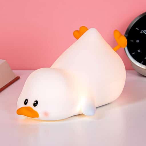 Beleuchte dein Zimmer mit diesem süßen Clumsy Duck Nachtlicht von Winkee. Diese berührungsempfindliche Lampe hat drei Lichtstärken, die du einfach durch Antippen der Ente wechseln kannst. Mit einem 30-Minuten-Schlaftimer, perfekt als Nachtlicht für Kinder. Die Lampe brennt bis zu drei Stunden bei voller Helligkeit. Perfektes Geschenk für Kinder oder alle, die süße Nachtlichter lieben!