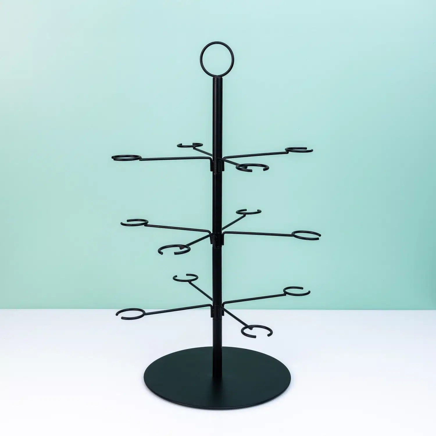 Mit dem Cocktailbaum für 12 Gläser von MikaMax sorgst du dafür, dass deine Party noch festlicher aussieht. Dieser praktische Glashalter ist so gestaltet, dass du zwölf Gläser daran aufhängen kannst. Er ist geeignet für Gläser mit einem dünnen Stiel, wie Cocktail-, Wein- und Champagnergläser. Der stählerne Glashalter hat einen Ring an der Oberseite, an dem du ihn hochheben kannst. So kannst du alles in der Küche vorbereiten und alle Getränke auf einmal mitnehmen.