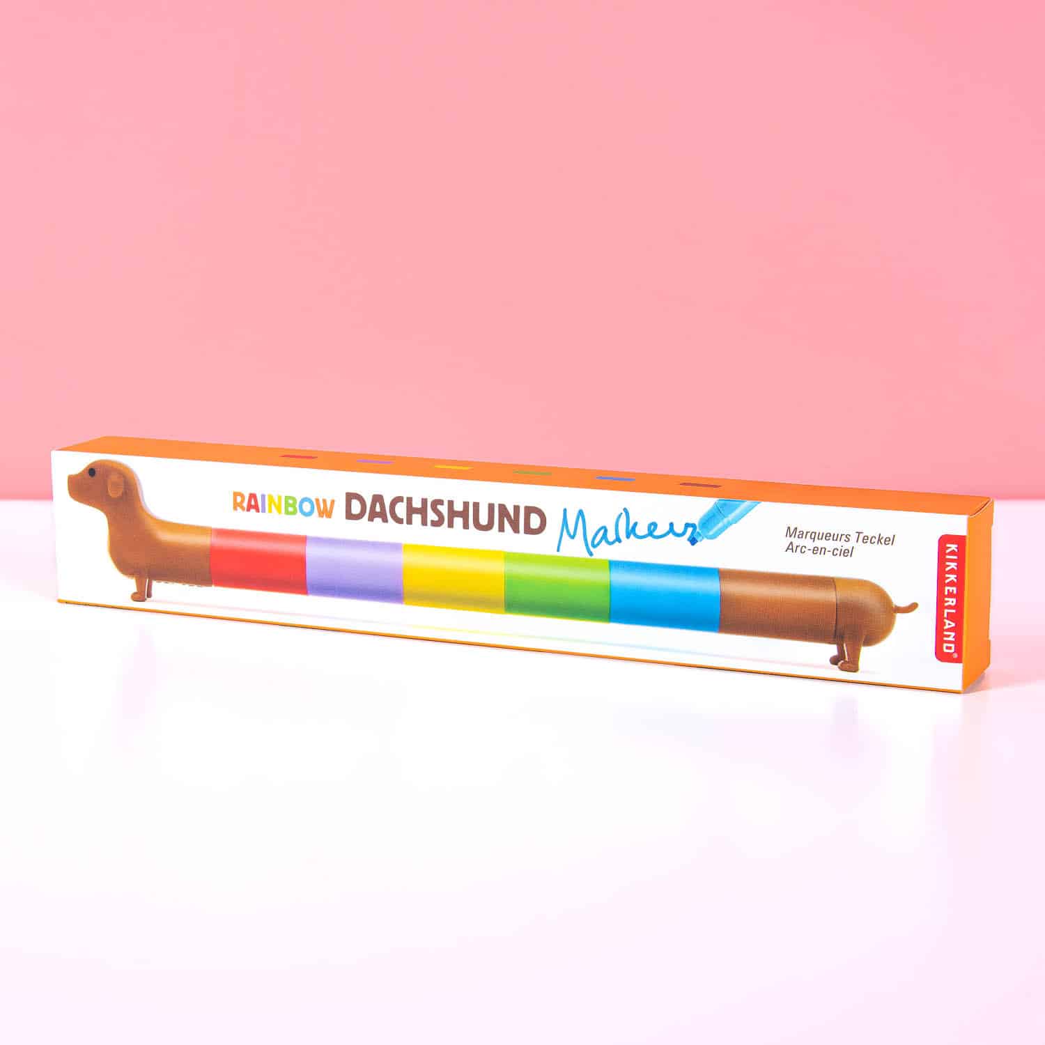 Die Dackel Textmarker von Kikkerland sind fรผr alle, die Dackel lieben und Farben. Dieses Set aus sechs Textmarkern stapelst du รผbereinander, um einen kompletten Dackel zu bilden, komplett mit Kopf und Schwanz. Perfekt fรผr die Schule, Bรผro oder einfach zu Hause, um deinen Notizen etwas Farbe zu geben. Tolles Geschenk fรผr Dackelliebhaber, Studenten oder jeden, der kreatives Organisieren liebt.
