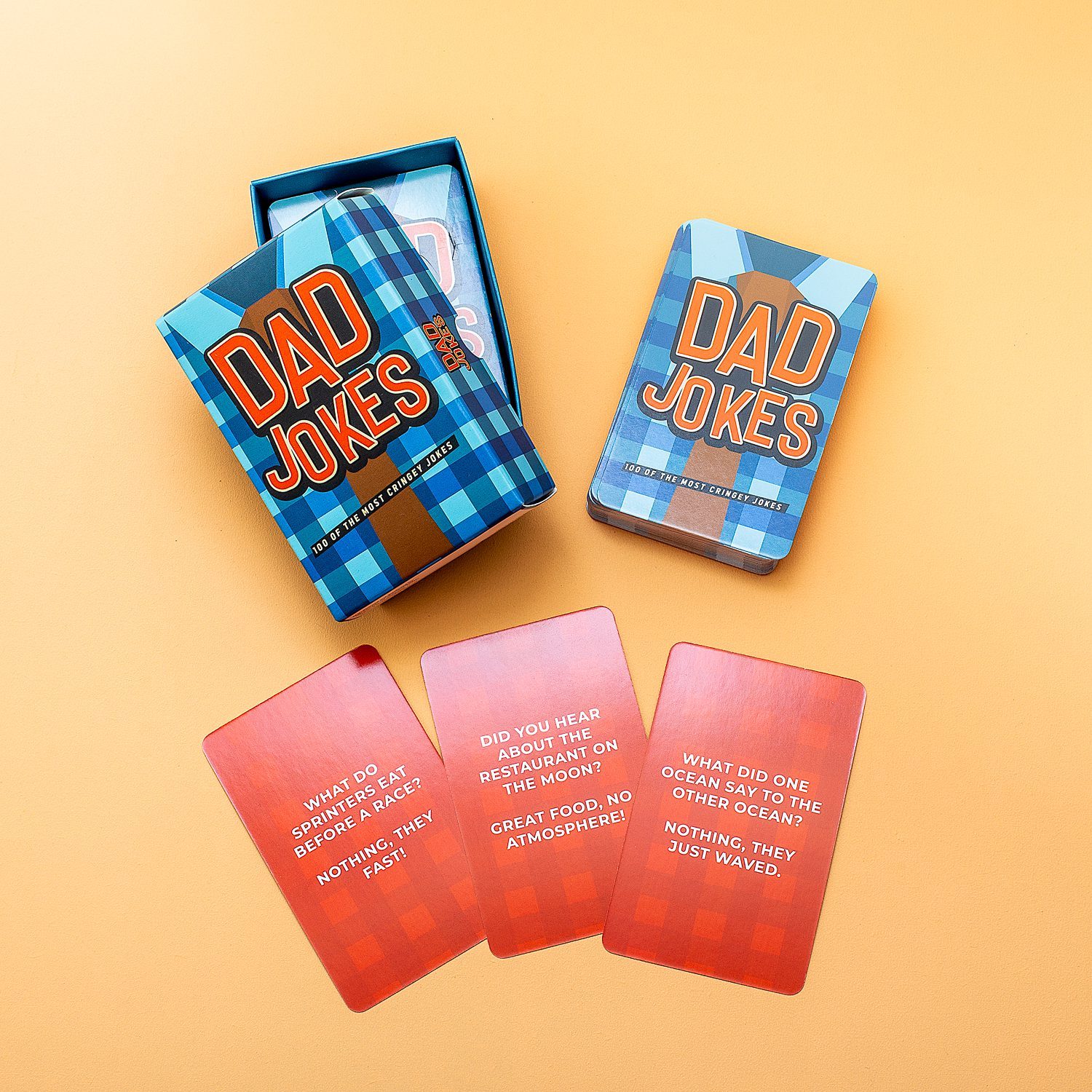 Dein Vater kann Witze erzรคhlen wie kein anderer. Zumindest glaubt er das. Du schรคmst dich, wenn er einem deiner Freunde einen Witz erzรคhlt und selbst am lautesten lacht. Und mit den Dad Jokes-Karten von Gift Republic wird es nicht anders sein.Dieses Set aus 100 Karten enthรคlt die krassesten Witze, wie zum Beispiel: Whatโs the worldโs saddest pizza? Pepperlonely. Sie sehen: Die Witze sind auf Englisch geschrieben.