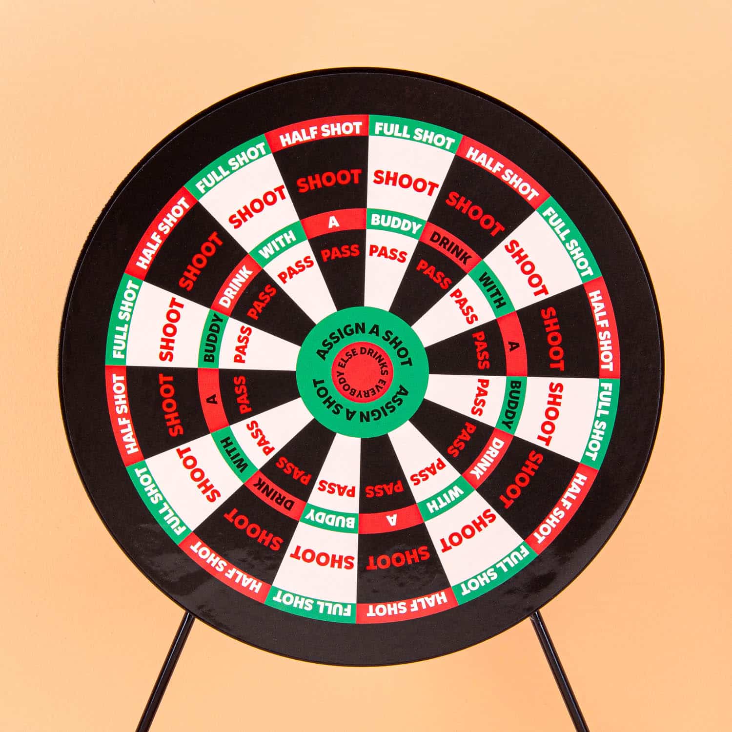 Bist du ein Fan von Trinkspielen? Dann ist das Darts Trinkspiel genau das Richtige fรผr dich! Auf dem Dartboard stehen Anweisungen, was du tun musst: einen Shot trinken, einen Freund trinken lassen und mehr.