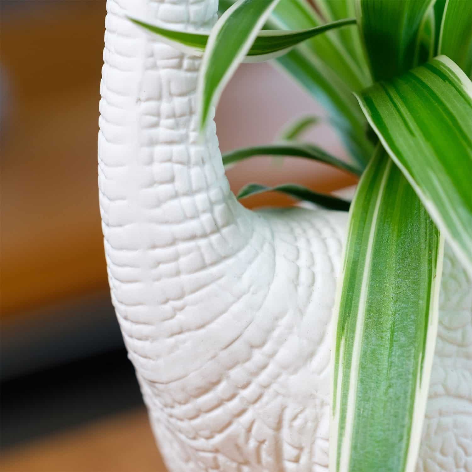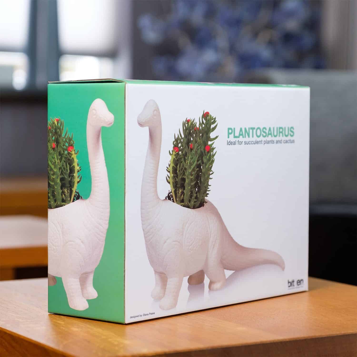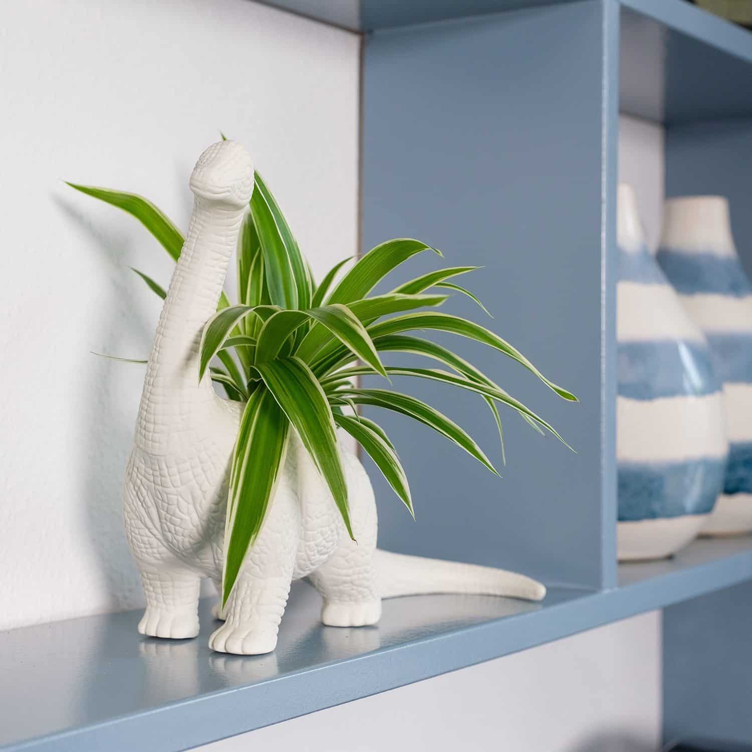 Der Dinosaurier Blumentopf von Bitten bringt die Urzeit in dein Leben. Dieser einzigartige Blumentopf in Form eines Dinos verleiht jeder Pflanze eine kraftvolle Ausstrahlung. Ideal zum Beispiel für einen Kaktus oder einen Farn, aber auch andere Pflanzenarten machen sich hervorragend auf dem Rücken dieses prähistorischen Giganten. Gib dem Dino einen schönen Platz am Fenster, auf der Fensterbank oder einfach gemütlich auf dem Tisch, wo er alles im Blick hat. Der Blumentopf aus Keramik ist mit einer wasserdichten Schicht versehen, damit die Erde feucht bleibt. Ein wunderschönes Accessoire für dein Interieur.