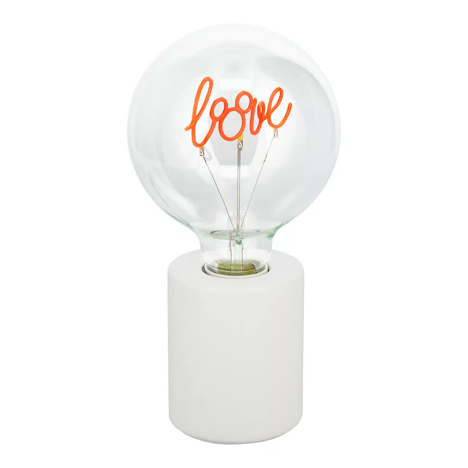 Die Disney Mickey Mouse LED-Lampe mit Keramikfuß hat ein Filament in der Form des Wortes Love, wobei das „O“ die ikonischen Mickey-Ohren darstellt. Ein stimmungsvolles und liebevolles Geschenk für alle Disney-Fans.