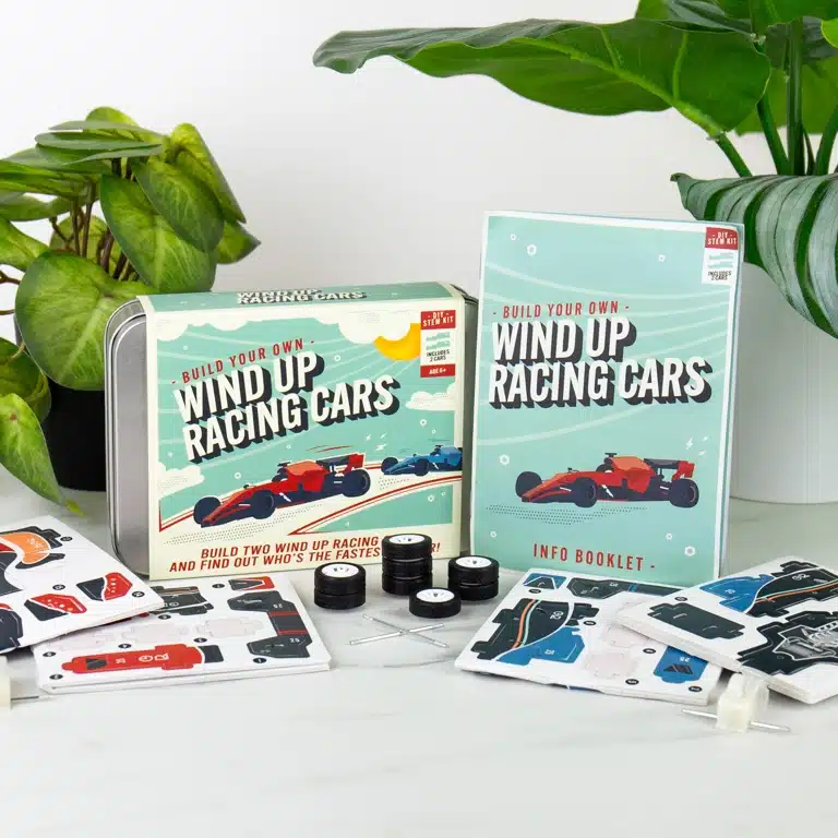 Ready, set, go! Mit DIY Rennautos von Gift Republic baust du 2 eigene aufziehbare Rennautos aus Foamboard. Komplett mit Aufziehmechanismen, Rädchen, Achsen und Anleitung. Perfekt für junge Ingenieure ab 6 Jahren, die Basteln UND Rennen lieben. Baue zusammen mit Freunden oder Familie und fordere einander heraus für das ultimative Rennen. Fördert Kreativität, Teamwork und Problemlösungsfähigkeit. Schönes Geschenk für Kinder, die Rennen und Technik lieben. Denn selbst bauen ist cooler als fertig gekauft!