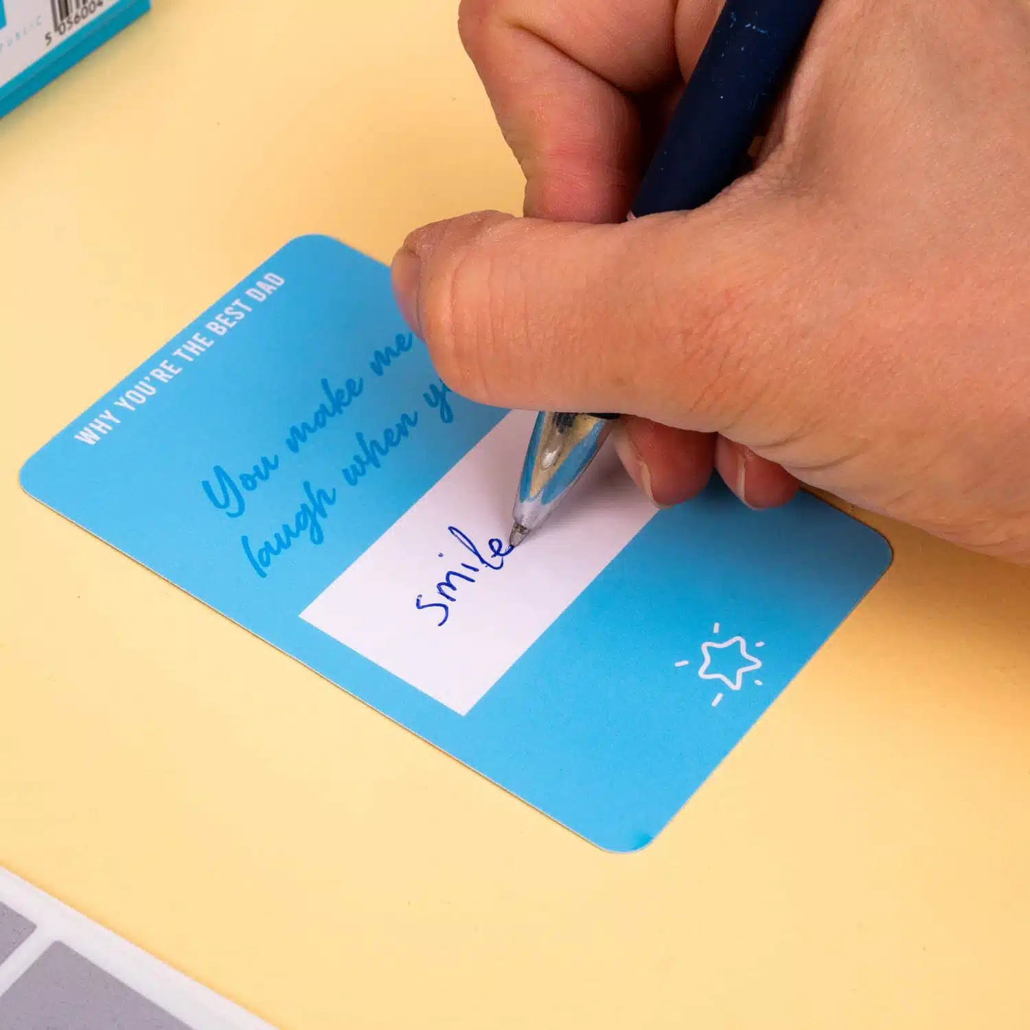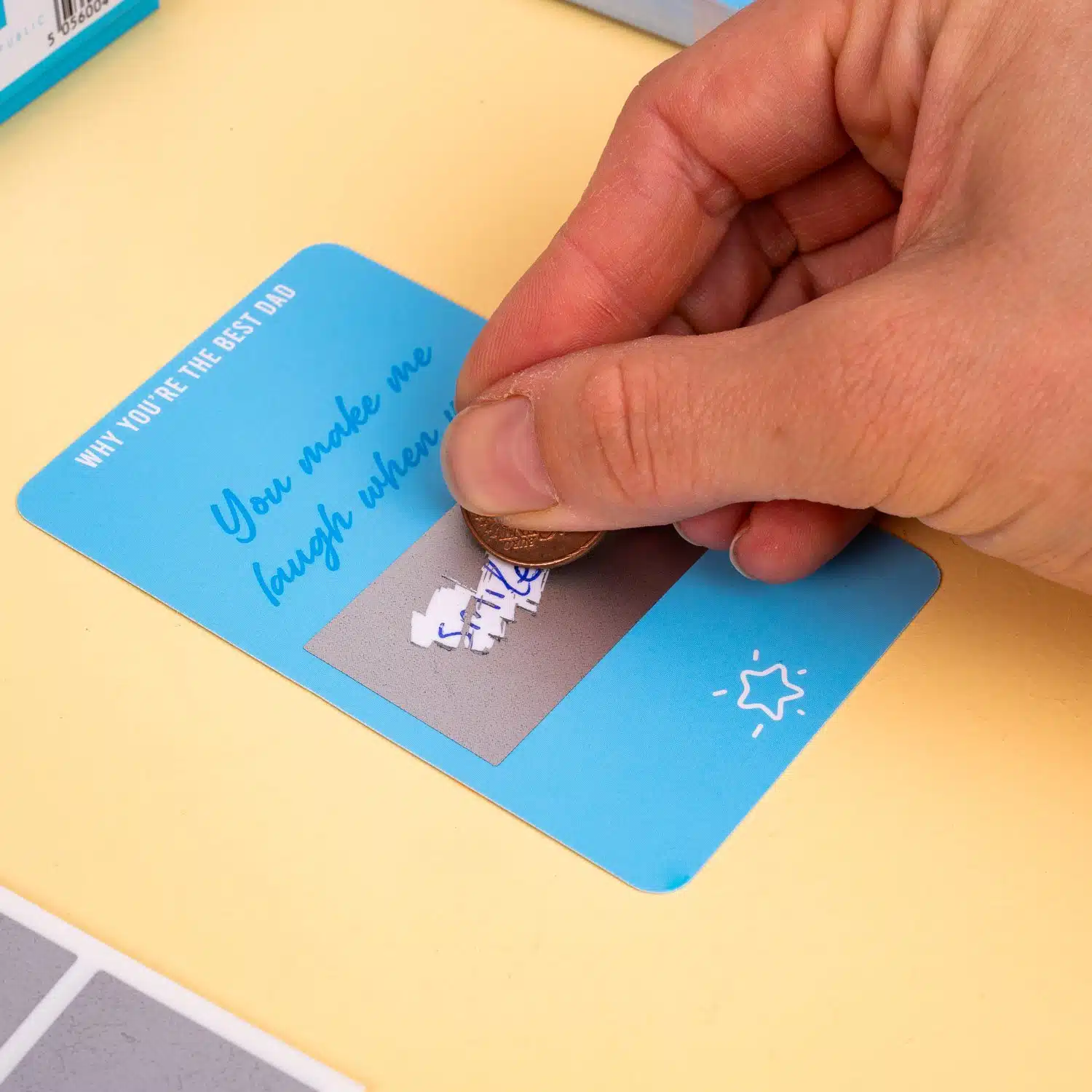 รberrasche deinen Vater oder deine Mutter mit einem einzigartigen und persรถnlichen Geschenk zum Geburtstag. Die DIY-Rubbelkarten “Warum du der Beste bist” von Gift Republic sind ein Set von Rubbelkarten, auf die du selbst Texte schreibst. Auf den Karten stehen englische Texte wie: “people say we are…” und “something I would love to do together is…”. Du fรผllst selbst die Antwort aus und klebst dann die Rubbelfolie darรผber. Dein Vater oder deine Mutter kann dies dann wieder wegkratzen, um die Antwort zu enthรผllen.