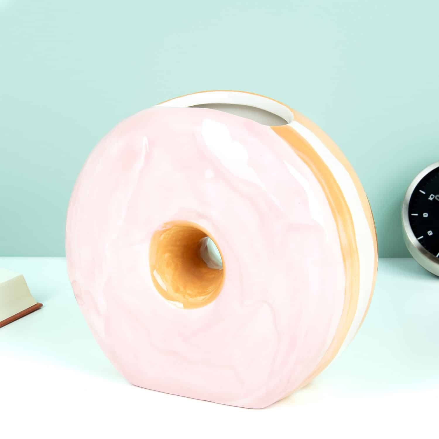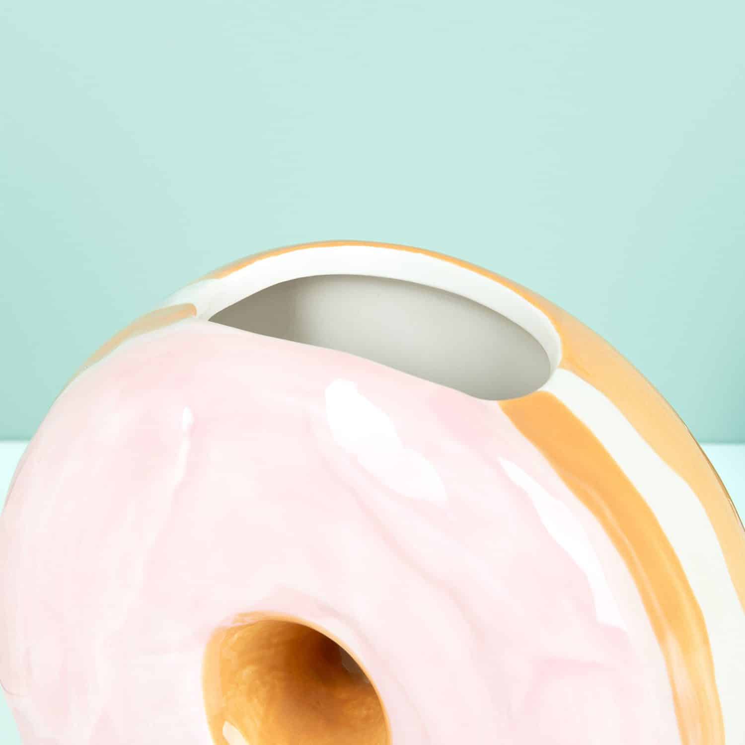 - Vase, die aussieht wie ein Donut mit rosa Zuckerguss
