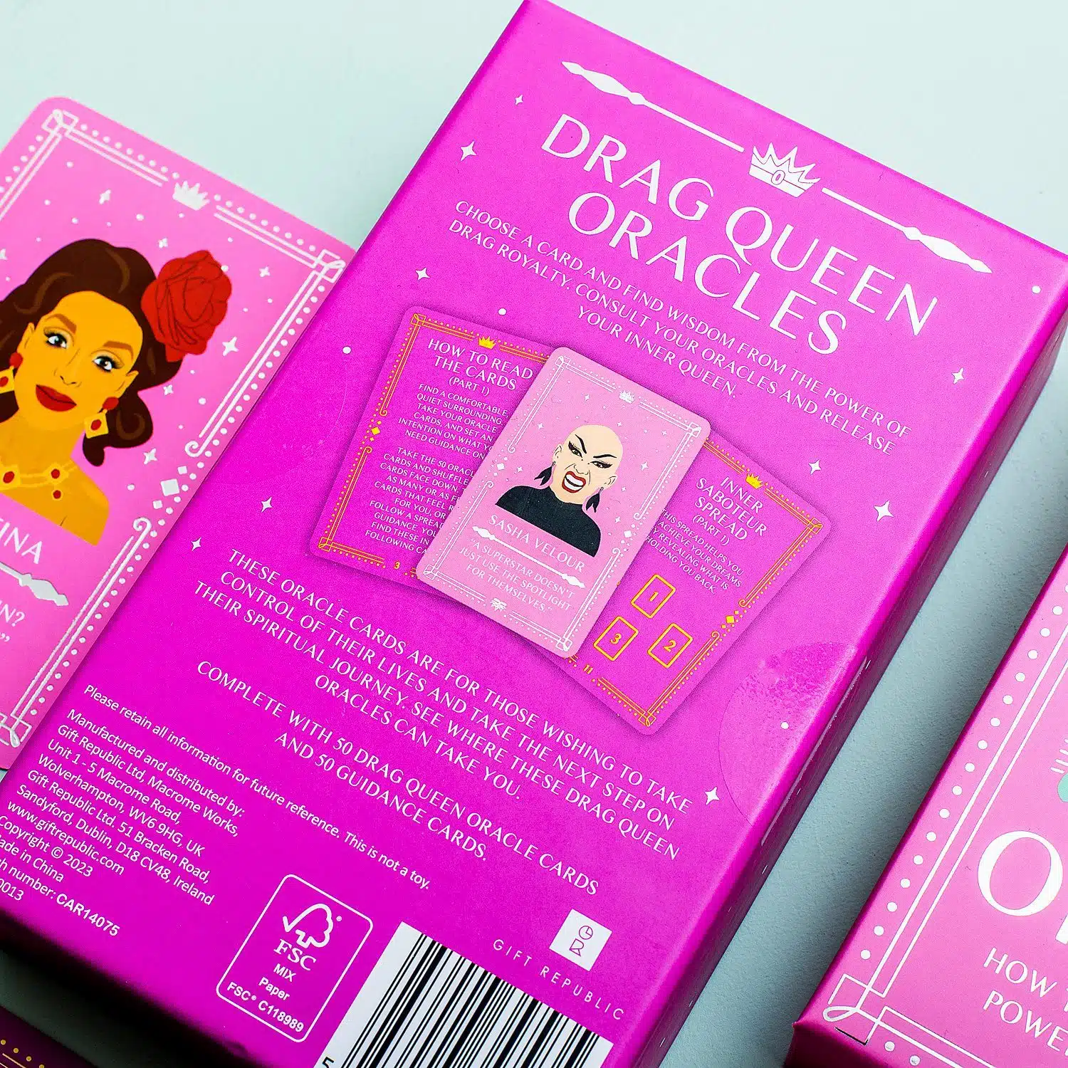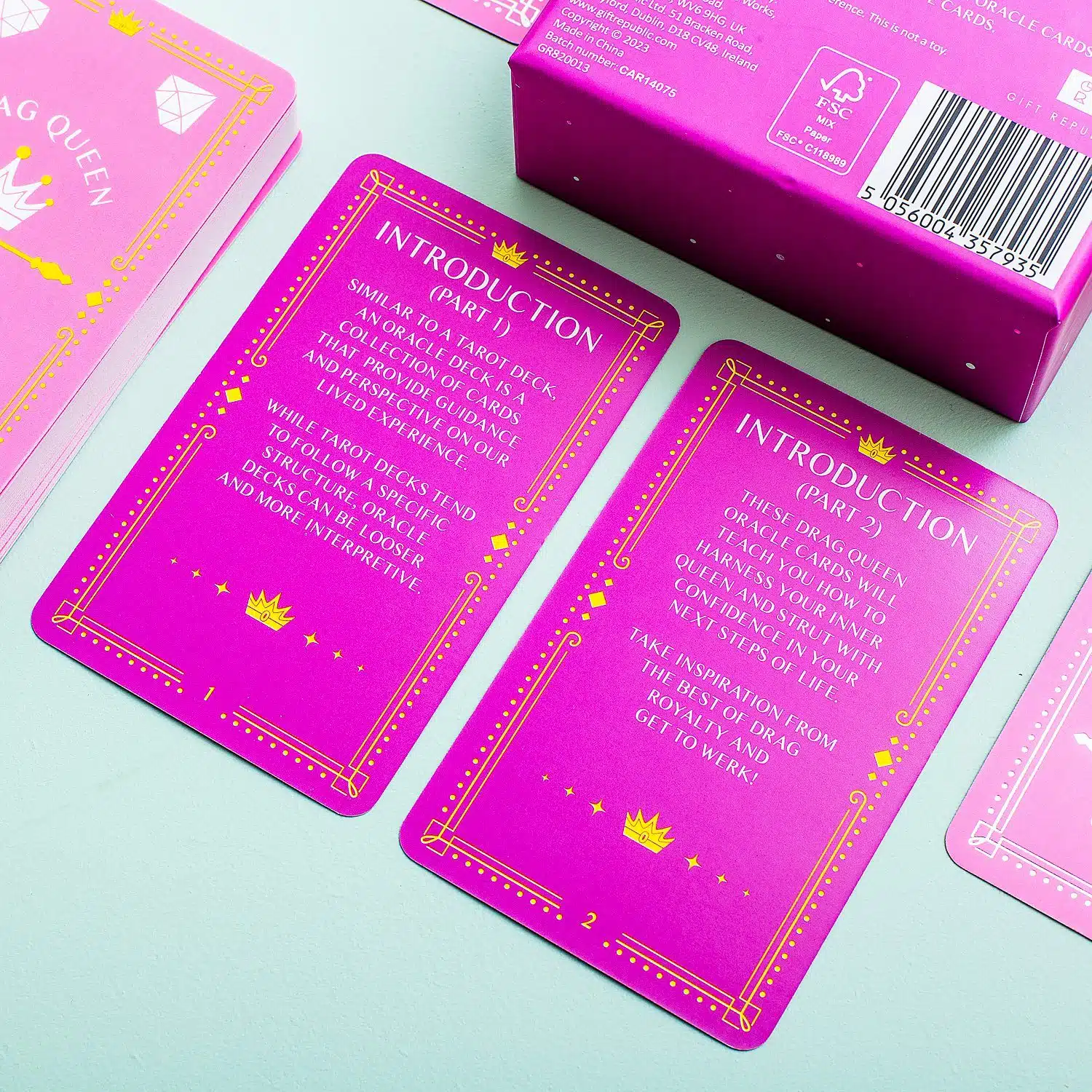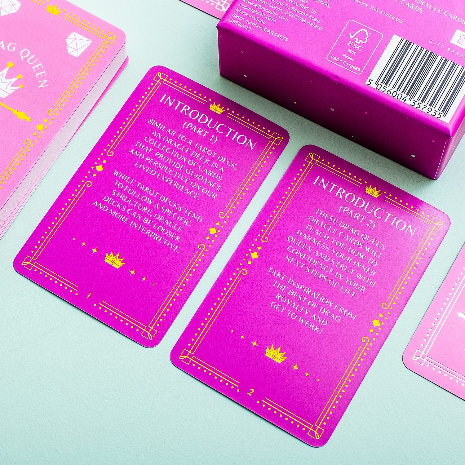 Sind Sie bereit, wie die Kรถnigin zu glรคnzen, die Sie sind? Die Drag-Queen-Orakelkarten von Gift Republic helfen Ihnen dabei! Sie verwenden dieses Kartenset als eine Art Tarotkarten: Sie stellen eine Frage und ziehen eine Karte.Die Drag Queen auf der gezogenen Karte gibt dir dann Ratschlรคge. Bist du bereit, deine innere Kรถnigin anzunehmen und dein Leben mit Zuversicht zu leben? Insgesamt besteht das Set aus 100 Karten: die Hรคlfte mit Ihren Lieblings-Drag-Queens und fรผnfzig Karten mit Tipps.