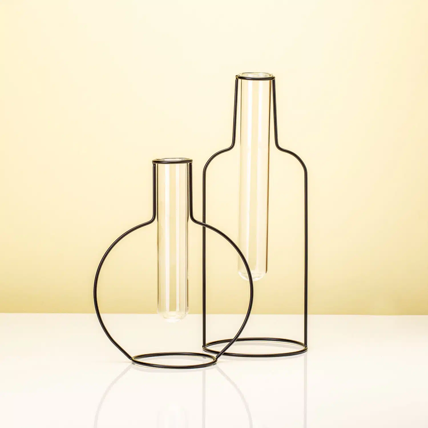 Wenn du die Drahtvase von Balvi das erste Mal siehst, wirst du wahrscheinlich erst einmal mit den Augen blinzeln. Ist es eine echte Vase? Oder eine Zeichnung, die zum Leben erwacht ist? Die Drahtvase ist eine echte Vase: aus schwarzem Metalldraht gefertigt und mit einem kleinen Glasvรคschen in der Mitte. Im Glasvรคschen ist Platz fรผr einen schรถnen Zweig oder ein paar kleine Blรผmchen. Du kannst zwischen vier Varianten wรคhlen: eine runde oder eine gerade Vase und in den Grรถรen klein oder groร. Auf jeden Fall ein Blickfang in deinem Interieur.
