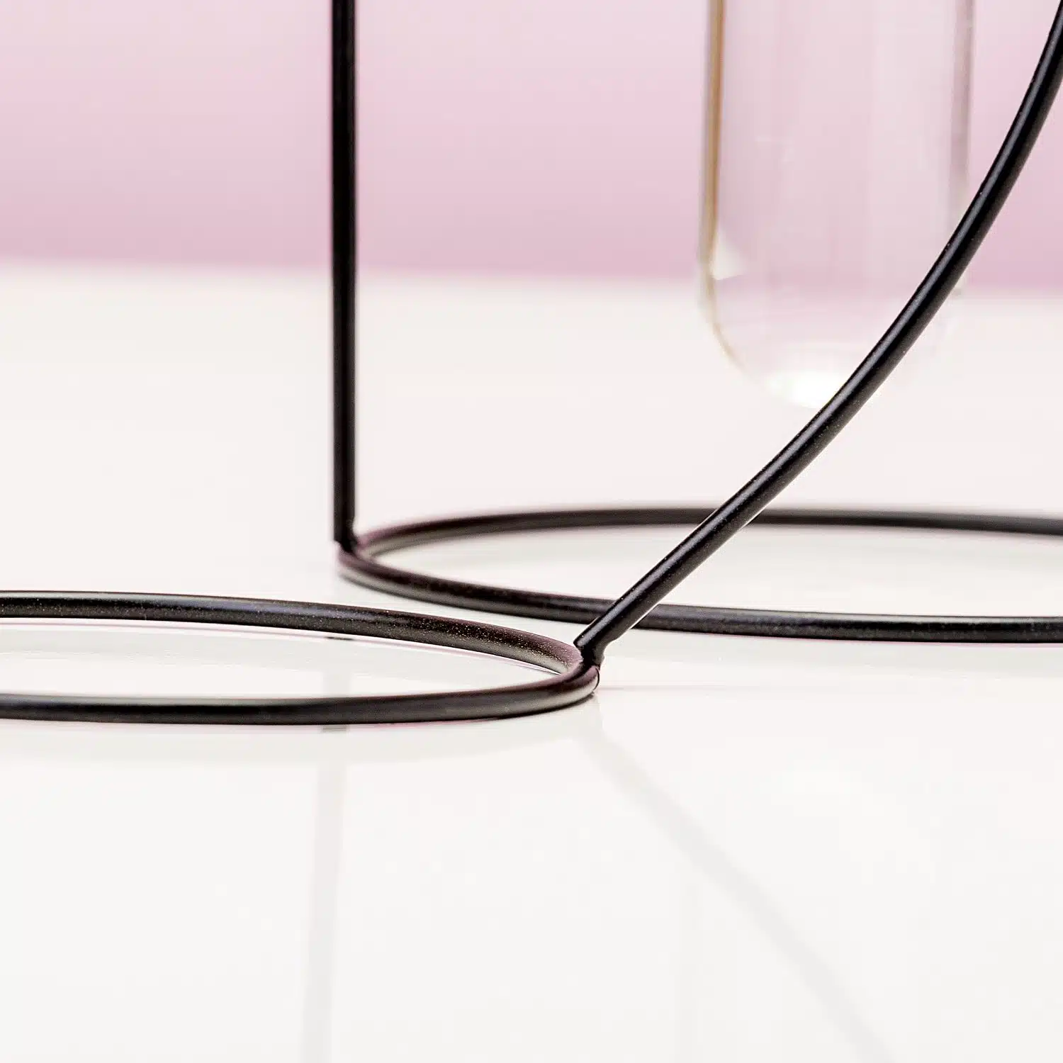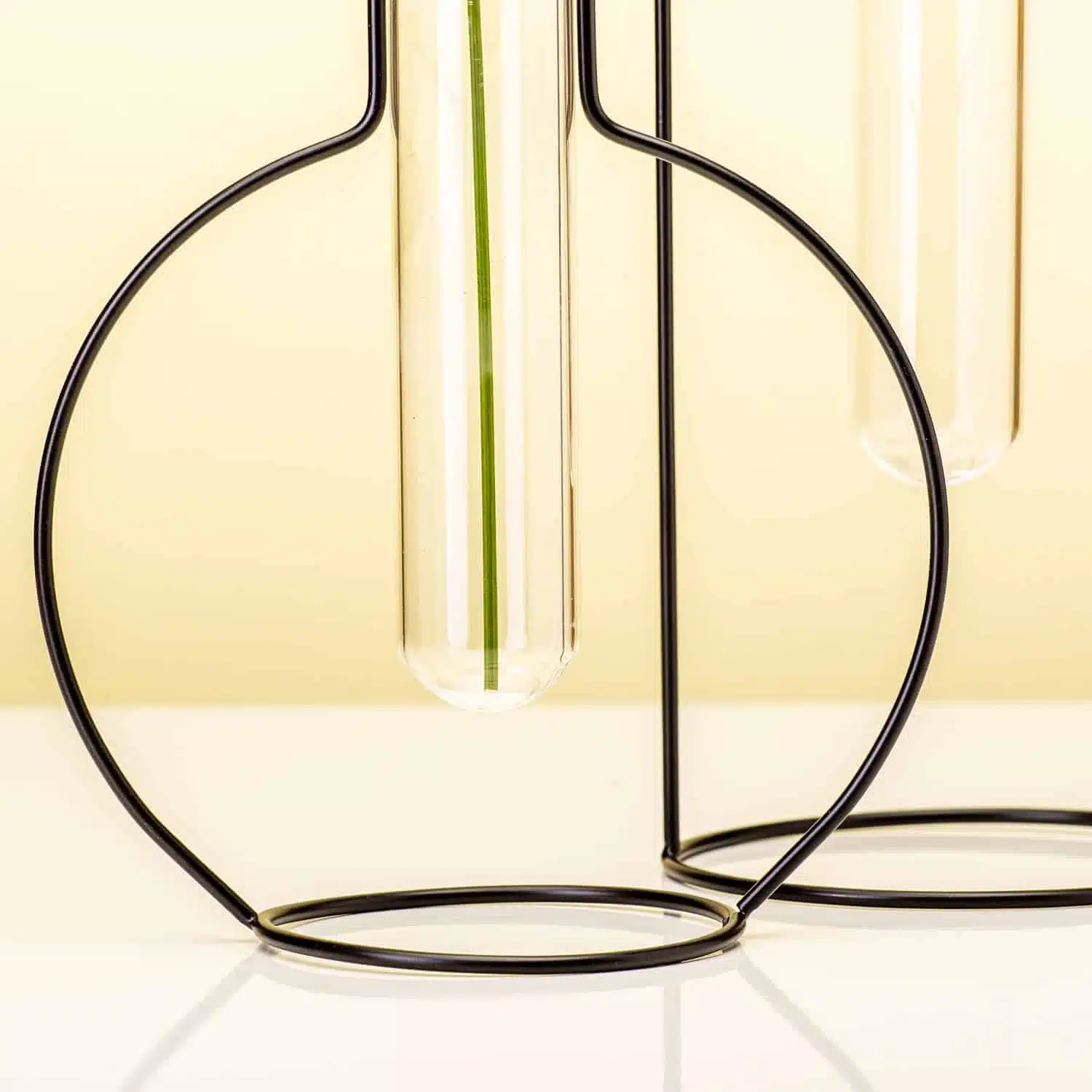 - Die Vase besteht aus Metalldraht und hat ein kleines Glasvรคschen