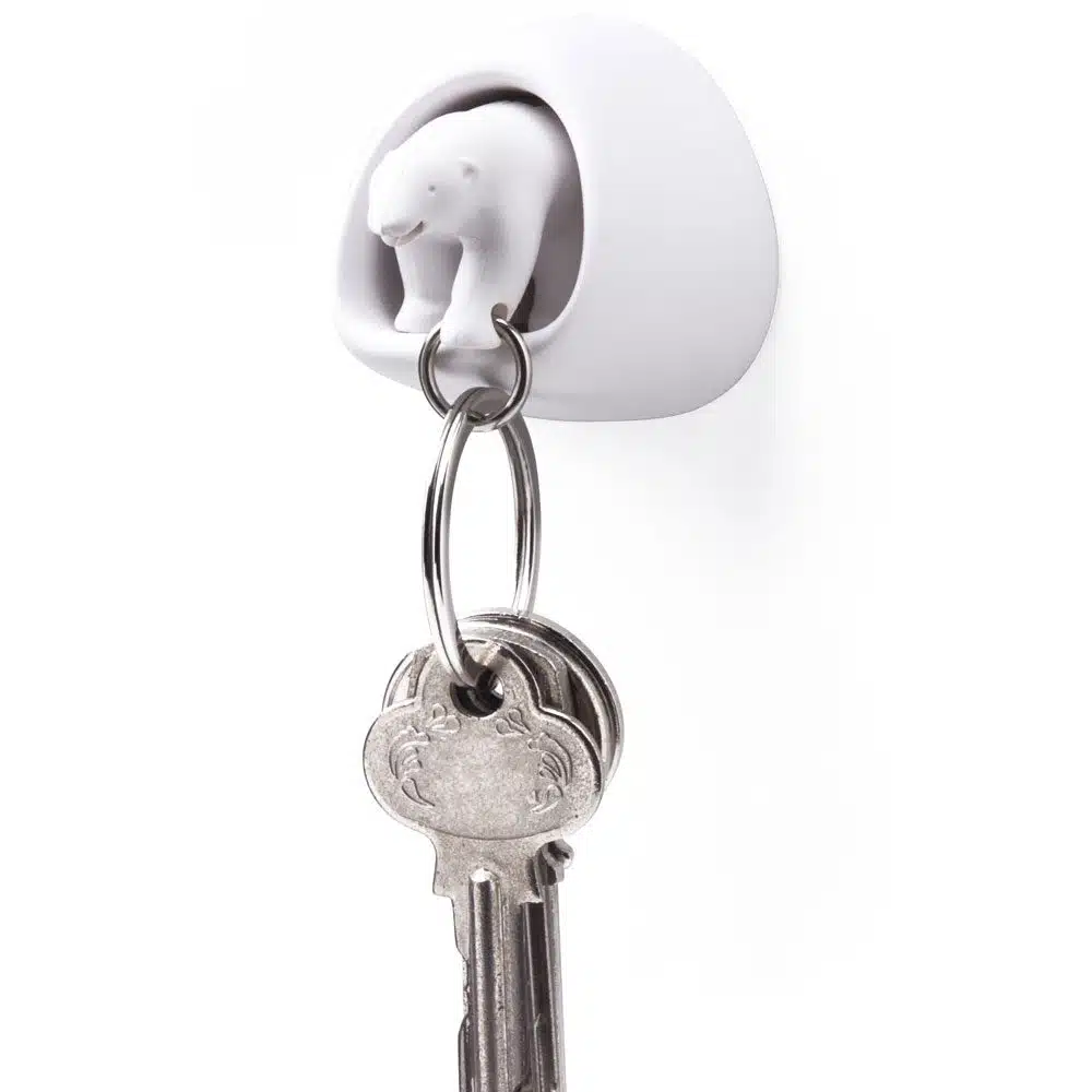 Verlierst du jeden Morgen deinen Schlüssel? Oder hilfst du täglich deinen Kindern beim Suchen? Mit dem Eisbär Schlüsselhalter von Qualy gehört das der Vergangenheit an. Dieser Schlüsselanhänger hat die Form eines Eisbären. Wenn du zu Hause bist, platzierst du ihn in seiner sicheren Eisberg-Höhle. Unterwegs hast du eine süße Ergänzung für deinen Schlüsselbund. Natürlich ist es der Plan, den Bären bei seiner Rückkehr sofort in seine Eishöhle zurückzulegen. So weißt du immer, wo deine Schlüssel sind. Der Schlüsselanhänger hat noch eine besondere Funktion: Der Eisbär dient nämlich auch als Pfeife.