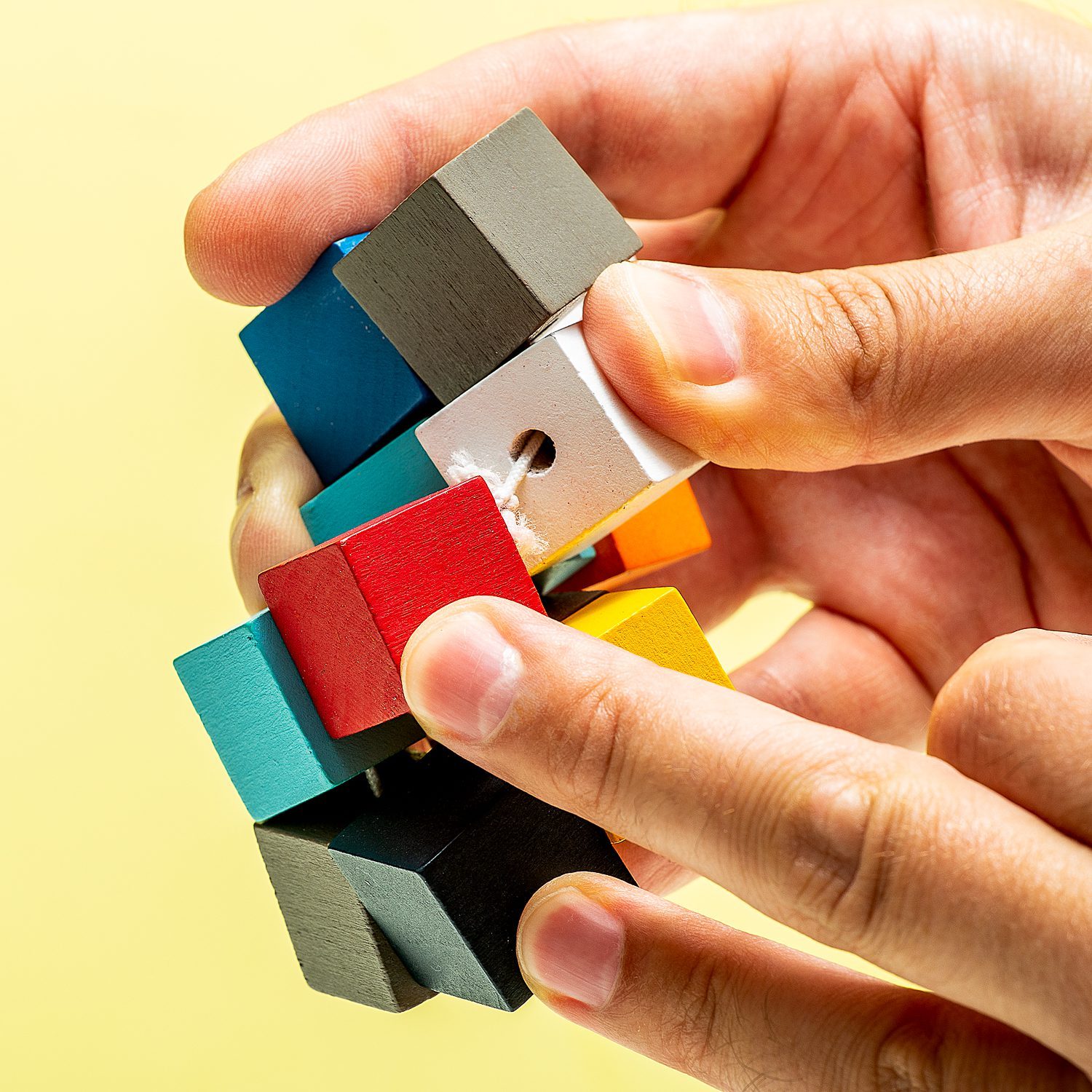 Hast du gerne immer etwas in den Hรคnden, mit dem du spielen kannst? Oder suchst du etwas Kreatives, das nichts mit einem Bildschirm zu tun hat? Das elastische Holzpuzzle von Kikkerland ist eine tolle Mรถglichkeit, kreativ zu sein. Dieses Puzzle besteht aus zwรถlf Holzklรถtzen, die mit einem Gummiband verbunden sind. Du kannst mit den Blรถcken verschiedene Formen erstellen. Es ist die perfekte Mรถglichkeit, Stress abzubauen und einfach mal an nichts zu denken.