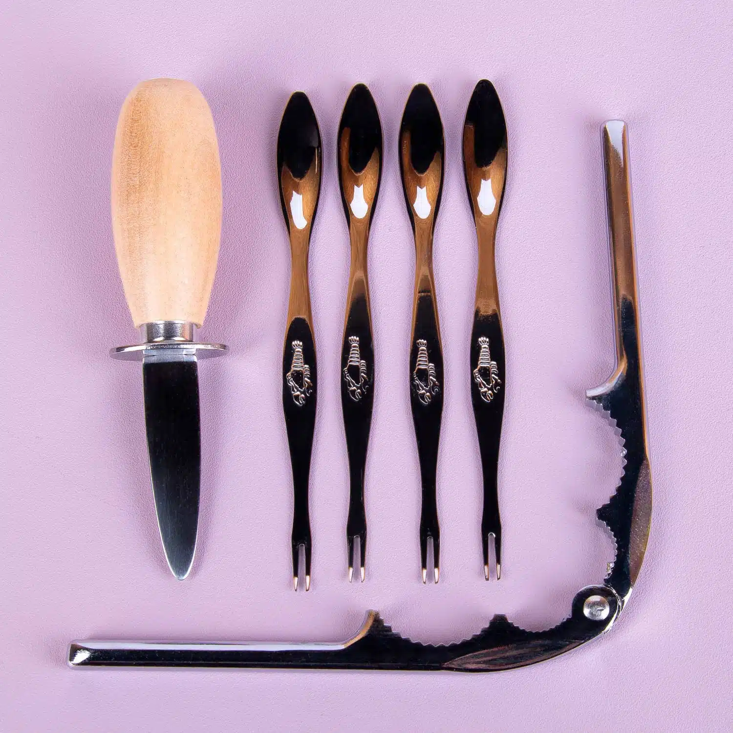 - Inklusive 1 Austernmesser, 1 Muschelknacker und 4 Meeresfrüchte-Bestecke
