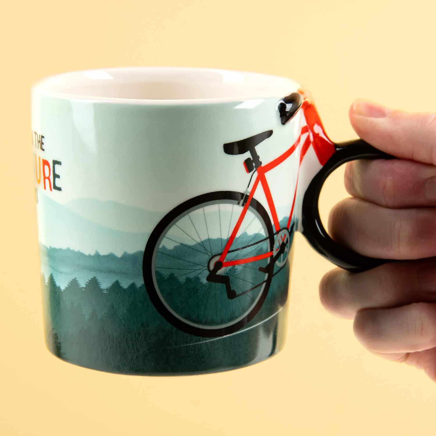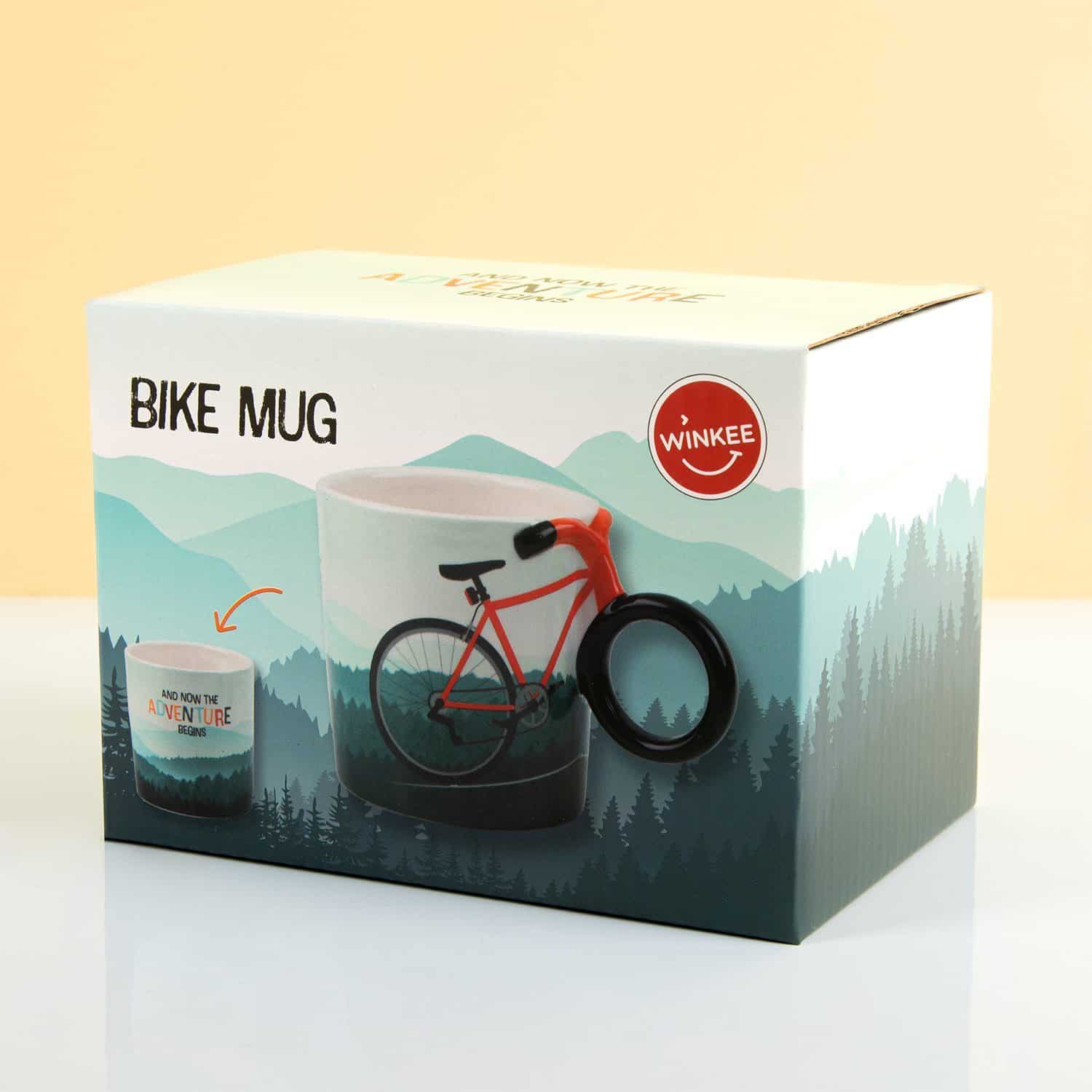 Bist du immer bereit fรผr ein Abenteuer? Dann passt die Fahrrad Tasse von Winkee gut zu dir. Diese lustige Tasse hat einen einzigartigen Henkel: das Vorderrad des Fahrrads, das auf der Tasse abgebildet ist. Der bergige Hintergrund sorgt dafรผr, dass du sofort Lust bekommst, dein nรคchstes Abenteuer zu erleben. Auf der Rรผckseite der Tasse steht auch der Text: And now the adventure begins.