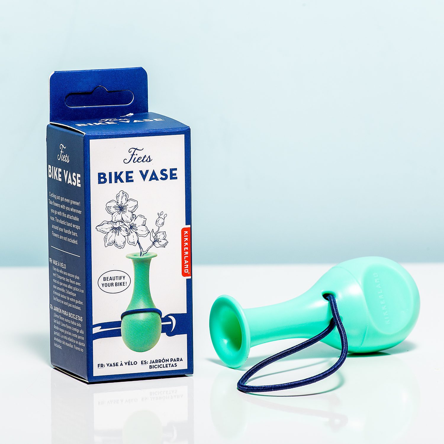Vorbei sind die Zeiten, in denen du mit einem Korb voller Blumen am Lenker herumgefahren bist. Du entscheidest dich fรผr minimalistisch frรถhlich mit der Fahrradvase von Kikkerland. Diese kleine Kunststoffvase befestigst du mit dem elastischen Seil am Lenker. Mit ein paar Blumen darin machst du deine Fahrt von und zur Arbeit viel frรถhlicher! Und praktisch: dein Fahrrad ist leichter zu erkennen.