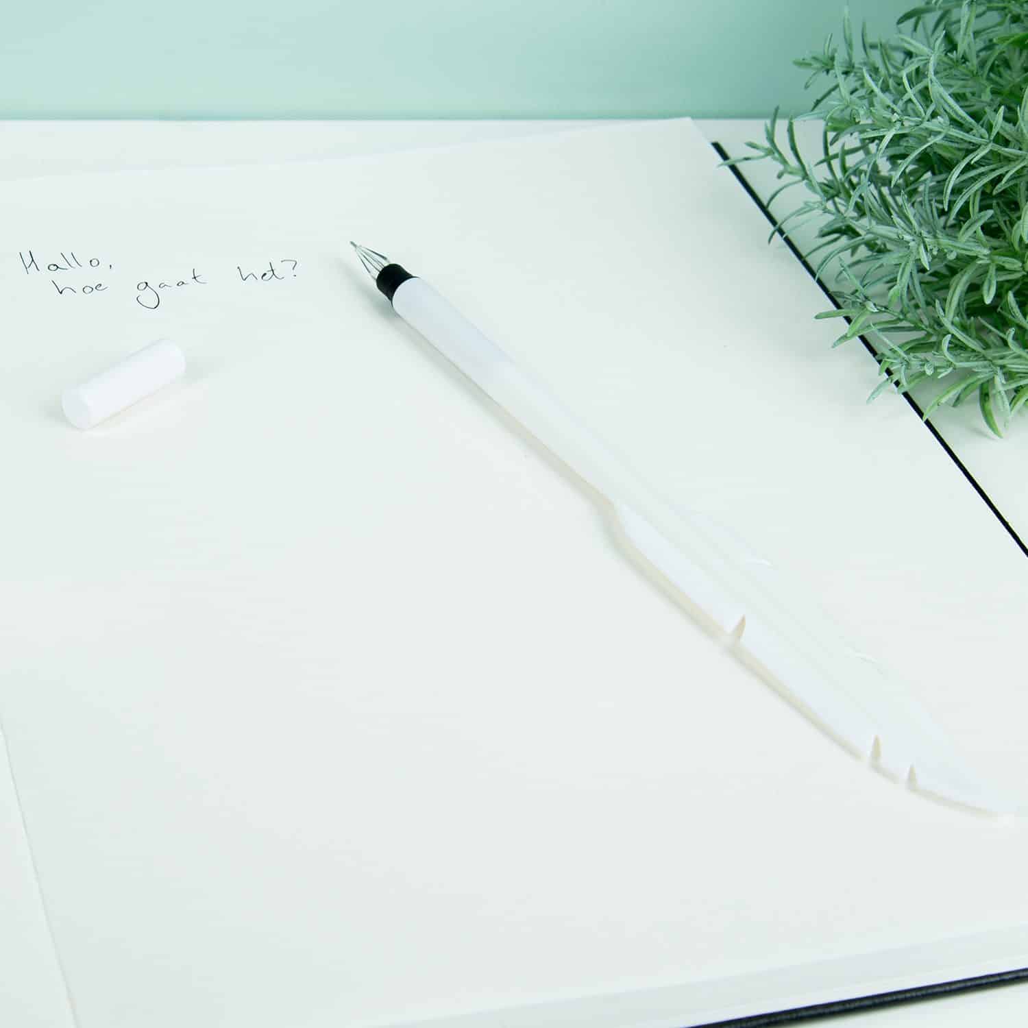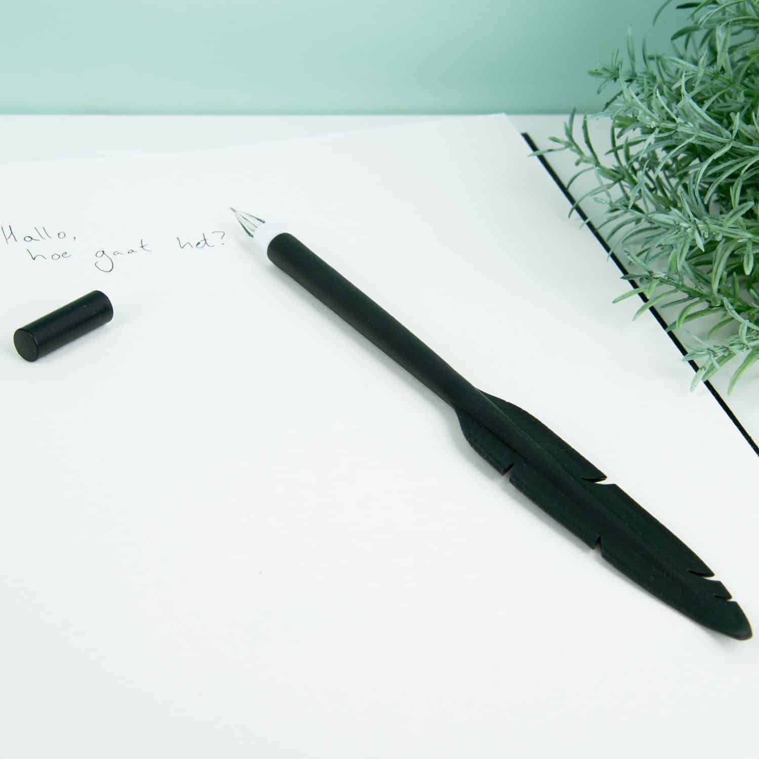Frรผher wurden mit einer Feder und einem Tintenfรคsschen ganze Briefe geschrieben. Heutzutage tippen wir viele kurze Nachrichten auf dem Computer oder Telefon. Mit diesem Feder Stift von Kikkerland kehrst du zurรผck in die Zeit. Der Stift ist wie eine Feder geformt und hat eine schmale Spitze. Dies ist die moderne Ausfรผhrung eines Federkiels zum Schreiben. Der Stift enthรคlt schwarze Tinte und hat eine Kappe, um das Austrocknen zu verhindern. Mit diesem Stift gleiten die Buchstaben sanft รผber dein Papier. Die Feder ist in den Farben Weiร oder Schwarz erhรคltlich: es ist eine รberraschung, welche Farbe du bekommst.