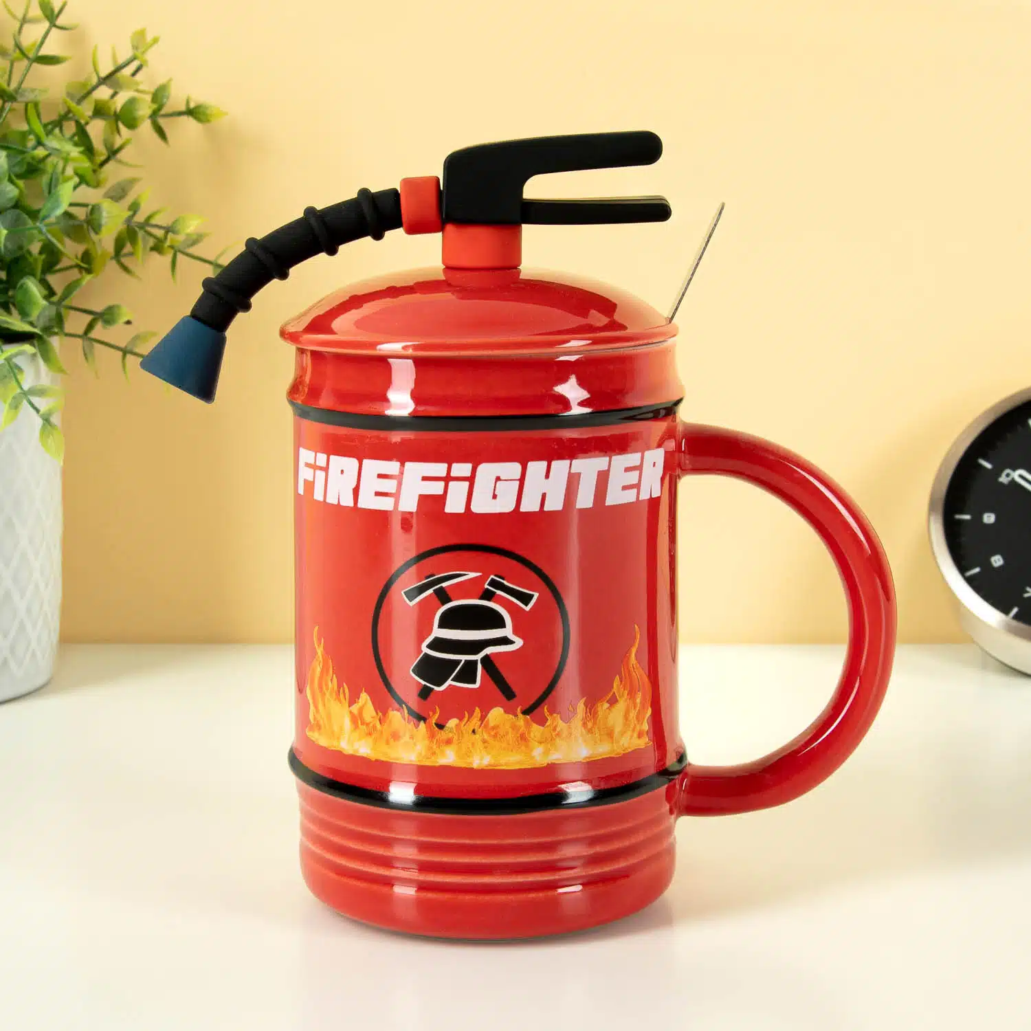 Wenn du fast vor Durst vergehst, gibt es nur eine Lösung: die Feuerlöscher-Tasse, um deinen Durst zu stillen. Diese außergewöhnliche Tasse sieht aus wie ein Feuerlöscher – inklusive Sprühdüse auf dem Deckel. Perfekt für Fans von Chicago Fire, die gerne heiße Schokolade mit Sahne genießen. Oder schenke sie einem Helden deiner örtlichen (Freiwilligen-)Feuerwehr oder jemandem, der humorvolle Tassen liebt.