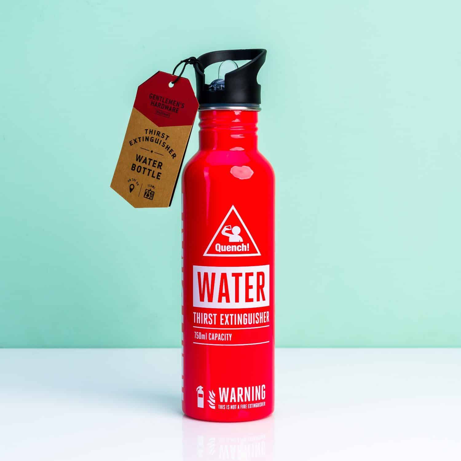 Nach einer Stunde im Fitnessstudio oder beim Mittagessen: Es ist immer schön, Wasser dabei zu haben. Mit der Feuerlöscher-Wasserflasche von Gentlemen’s Hardware können Sie sicher sein, dass Sie jedes Feuer selbst löschen können. Die Wasserflasche sieht aus wie ein Feuerlöscher und ist daher nicht nur nützlich, sondern auch lustig. Und durch die leuchtend rote Farbe fällt es auch noch schön auf. Die Flasche hat einen praktischen Griff und einen Trinkhalm.