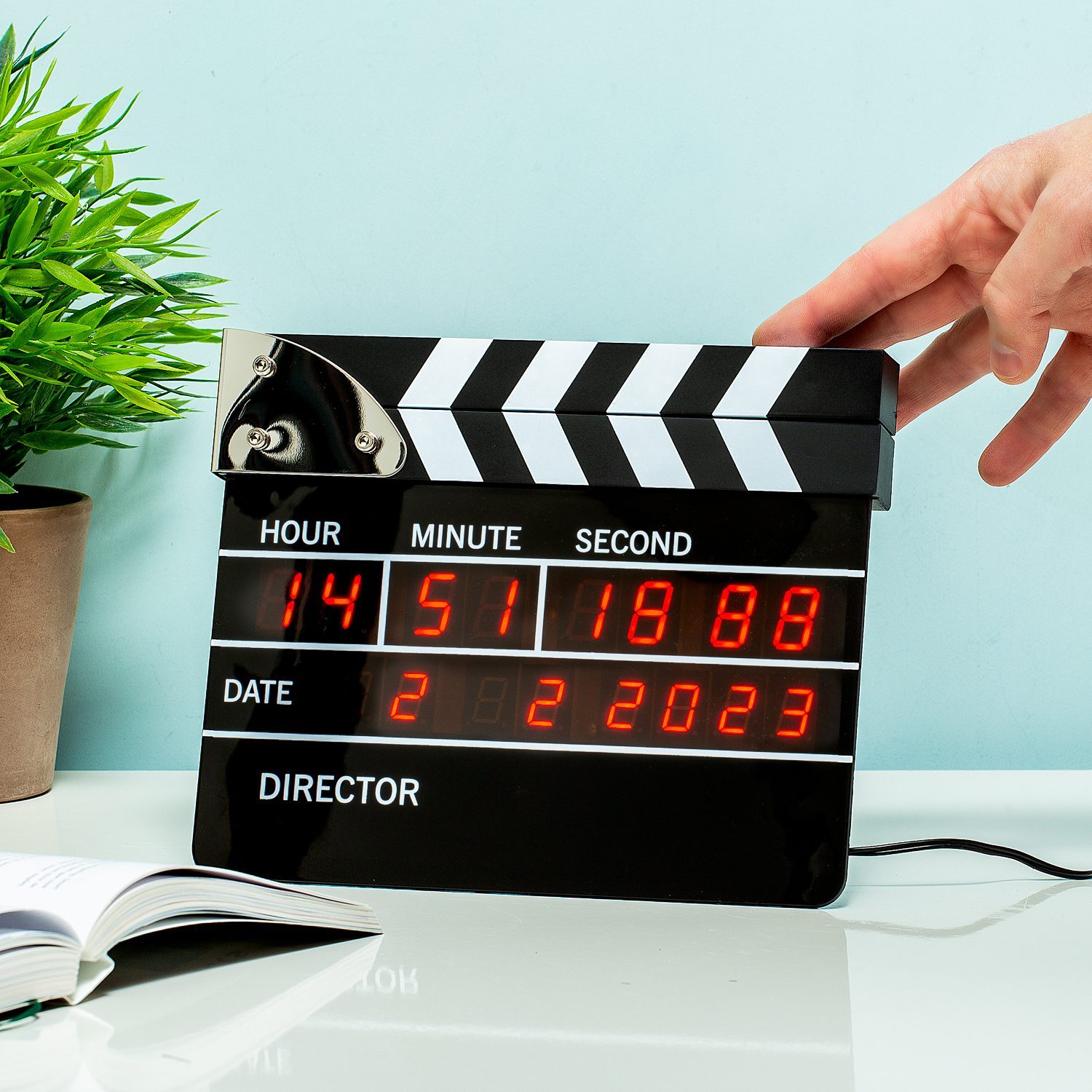 Trรคumen Sie von einer Karriere als Regisseur? Dann ist der Filmclapper-Wecker von Out of the Blue genau das Richtige fรผr Sie. Dieser originelle Wecker sieht aus wie eine Filmklappe. Wissen Sie, eines dieser Dinge, die auf dem Bildschirm zu sehen sind, bevor eine Szene gedreht wird.Der Wecker lรคsst Ihre Trรคume wahr werden, indem er Sie aufweckt, damit Sie Zeit haben, Ihren Trรคumen nachzujagen.