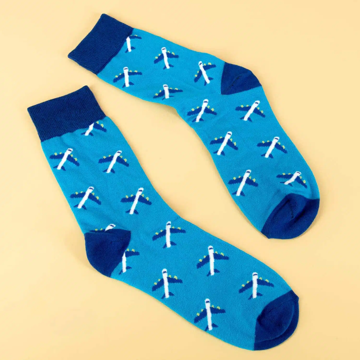 Trรคgst du gerne auffรคllige Socken oder suchst du ein originelles und praktisches Geschenk fรผr deinen Vater oder Freund? Dann sind die Flugzeug-Socken genau das Richtige! Die blauen Socken sind mit vielen kleinen Flugzeugen verziert โ perfekt fรผr deine nรคchste Reise oder um einem schlichten Outfit das gewisse Extra zu verleihen.