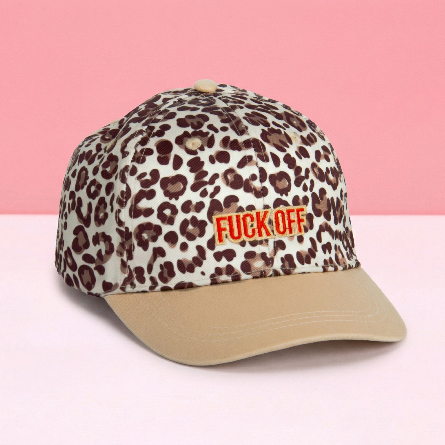 - Cap mit Leopardenprint und Text ‚Fuck Off‘