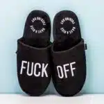 Bist du nicht in bester Stimmung, wenn du gestresst bist? Warne dein Liebes durch das Tragen der Fuck Off Hausschuhe von Fisura. Diese lustigen Pantoffeln haben auf dem rechten Fuß „Fuck“ und auf dem linken „Off“ stehen. Unter der Ferse im Inneren steht auch noch der Text „Have A Nice Fucking Day“. Tja, die Pantoffeln sind weich, die Botschaft ist es weniger. Du kannst die Pantoffeln in Rosa oder Schwarz bestellen.