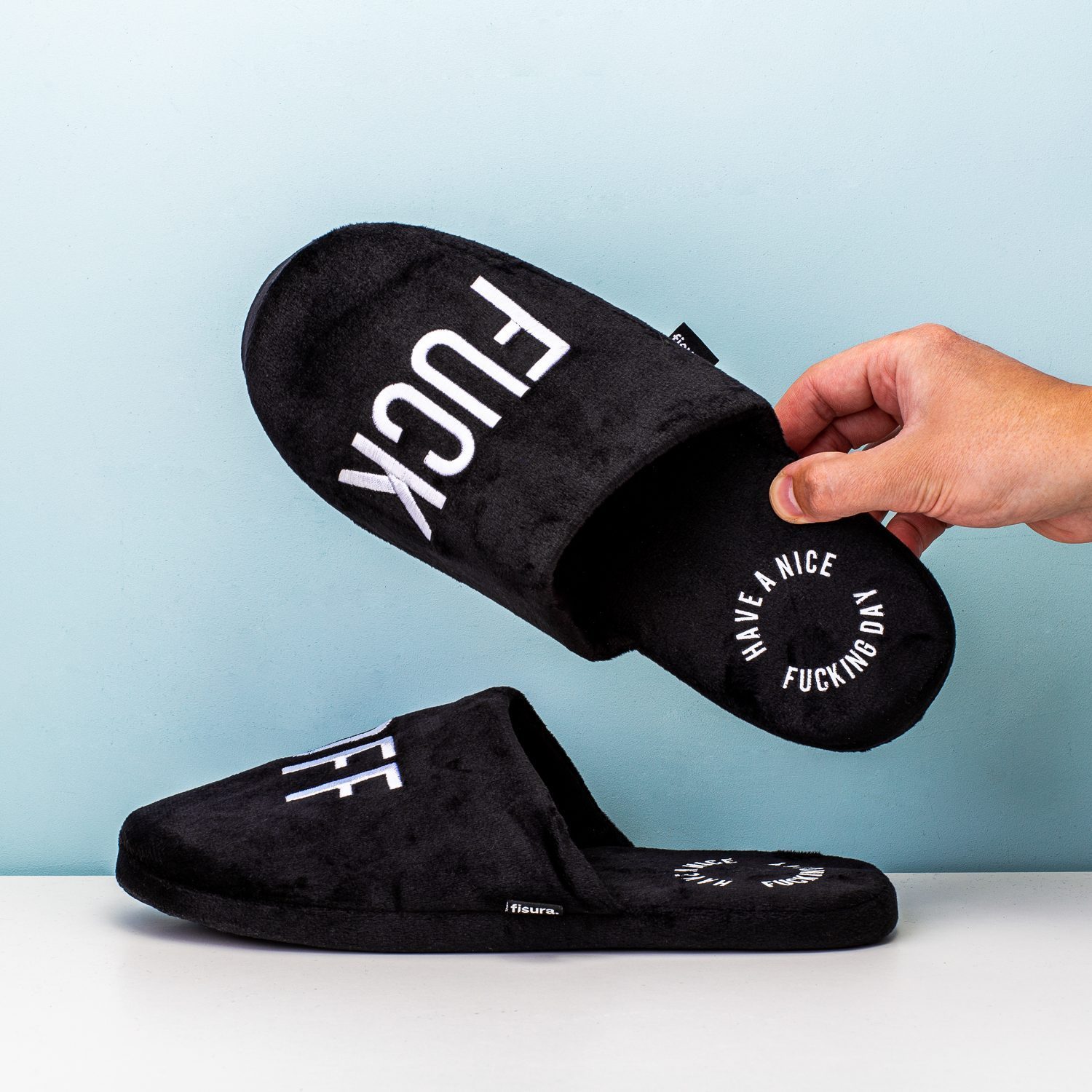 Bist du nicht in bester Stimmung, wenn du gestresst bist? Warne dein Liebes durch das Tragen der Fuck Off Hausschuhe von Fisura. Diese lustigen Pantoffeln haben auf dem rechten Fuß „Fuck“ und auf dem linken „Off“ stehen. Unter der Ferse im Inneren steht auch noch der Text „Have A Nice Fucking Day“. Tja, die Pantoffeln sind weich, die Botschaft ist es weniger. Du kannst die Pantoffeln in Rosa oder Schwarz bestellen.