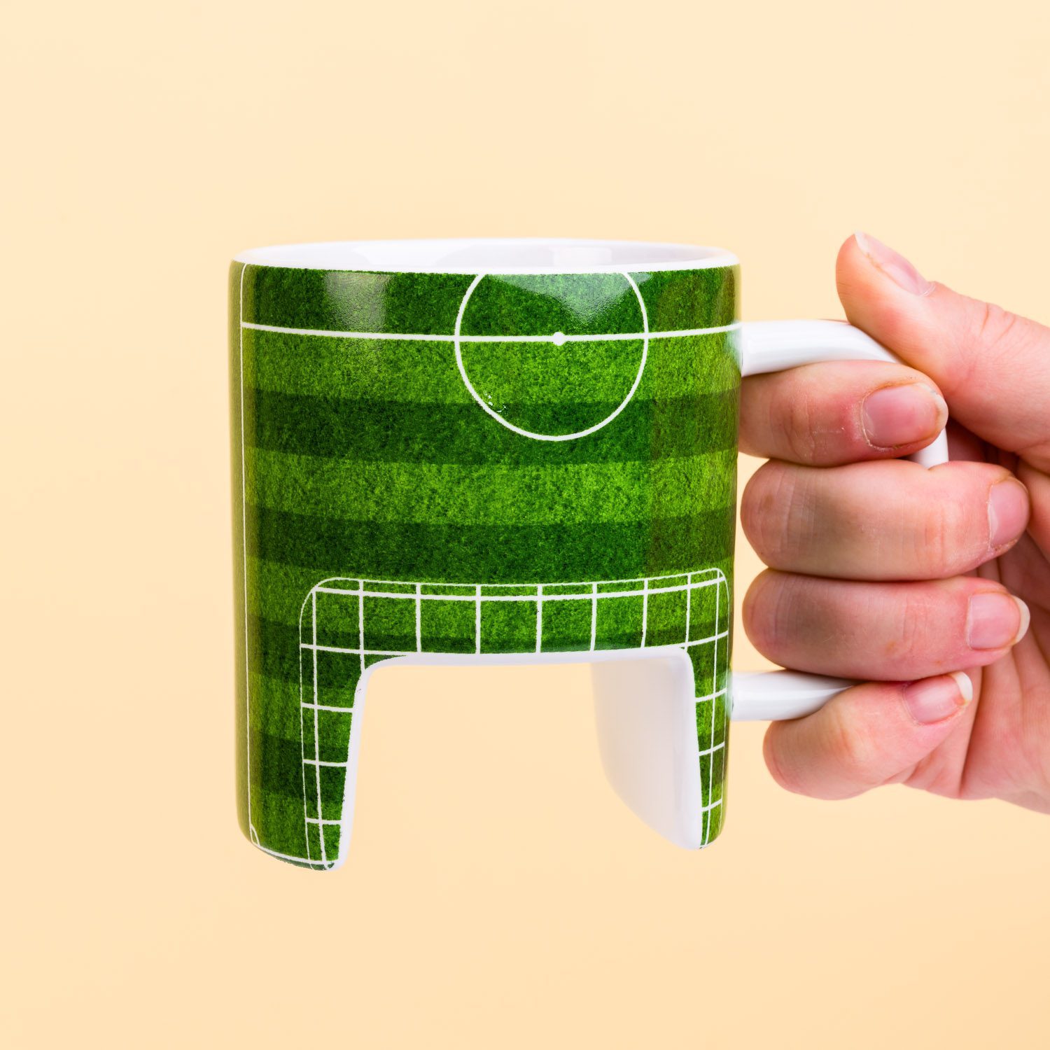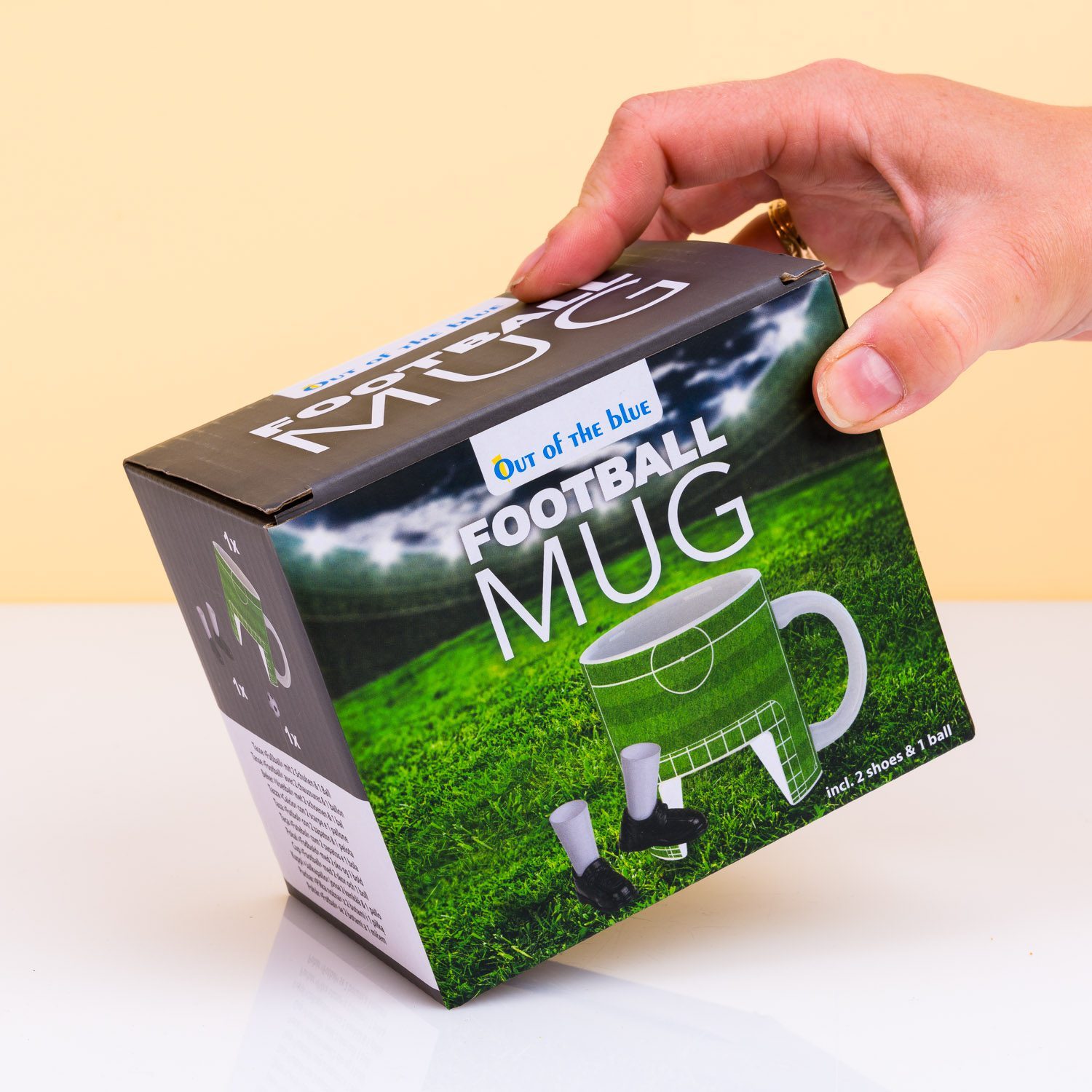 Benötigen Sie ein einzigartiges Geschenk für einen Fußballfan? Wählen Sie den Fußballbecher mit Schuhen und Ball von Winkee. Unten ist ein Ziel. Schieben Sie die Schuhe auf Ihre Finger und versuchen Sie, den Ball unter die Tasse zu treten. So wird Ihre Kaffeepause zu einer sportlichen Angelegenheit.